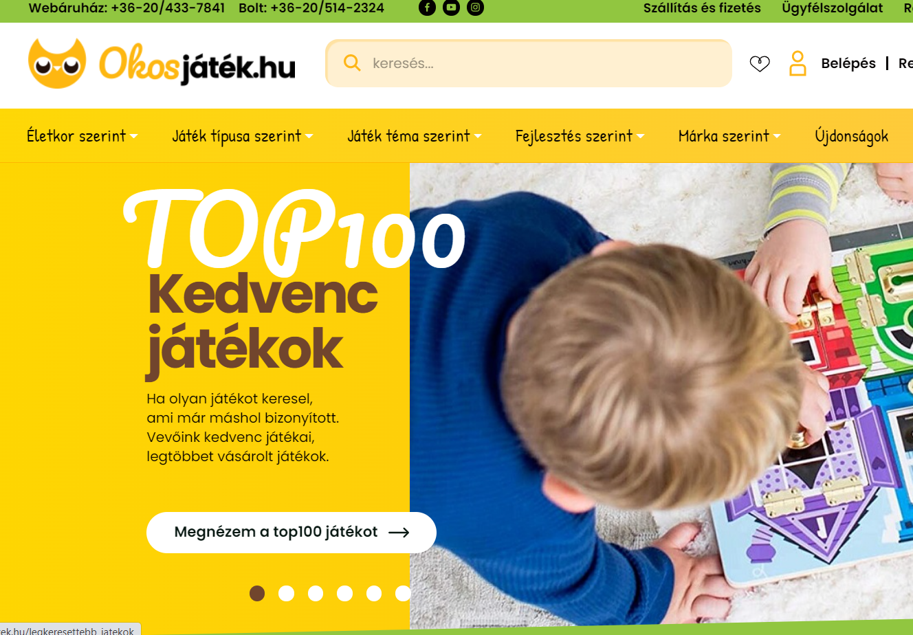 Mivel az oldalunkat látogatók főleg mobilról böngésznek, így fontos volt, hogy könnyen megtalálják azt, amire éppen szükségük van. Egyszerűsödött a keresés életkor, játékkategóriák alapján és a szűrés a sok-sok játék között. A webáruház főoldalán szinte minden fontos menüpont megtalálható, így több a görgetés, kevesebb a kattintás, amely sokkal kényelmesebb mobilról.