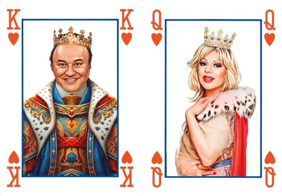 A szív király lapokon Korda Gyuri, a szív dáma lapokon pedig Klárika található stílusosan, elegánsan.