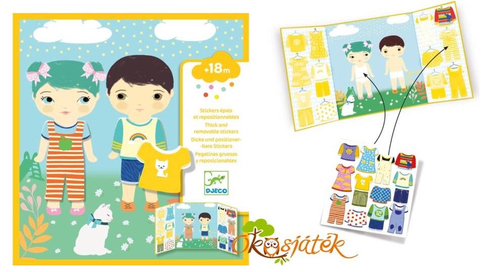 Az újraragasztható szettek között is találunk öltöztetős játékokat, lányosat és fiúsat egyaránt. Praktikusak, mert a megszokott matricákkal ellentétben ezek visszaszedhetők, mert nem ragasztó által ragadnak a felülethez. Ezeknél a játékoknál azon túl, hogy öltöztetés a lényeg, még a képalkotás és a baba környezetének elrendezése is szerepet kap.