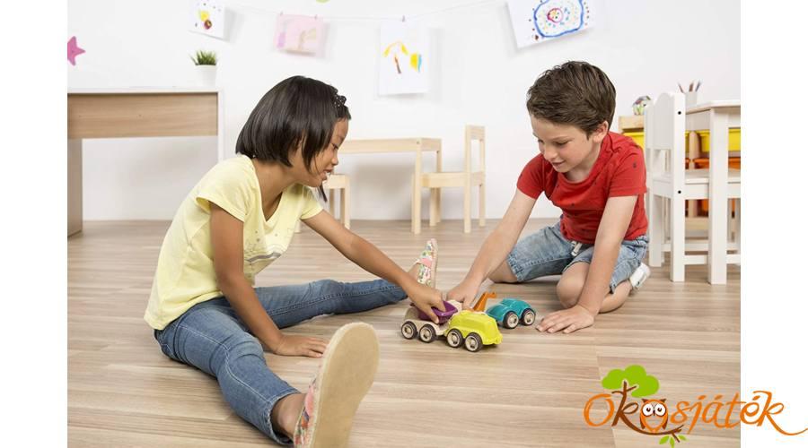 Ezeknél a megjelölt játékoknál a terméken kívül még a csomagolás is újrahasznosított anyagból készül.