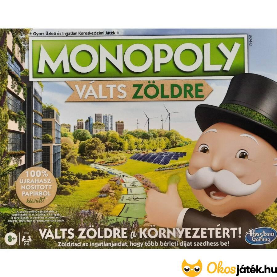 A Monopoly Válts zöldre társasjáték különlegessége, hogy a doboz minden tartozéka újrahasznosított papírból készült. A csomag, a játéktábla, a játékkalauz, a pénz, a kártyák, a tárolózsák, a betét és pénztartó tálca 100% -ban újrahasznosított papírból készült. A melegházak és dobókockák FSC tanúsítvánnyal rendelkező fából, a bábuk pedig növényi alapú műanyagból készültek, amely cukornádból, megújuló nyersanyagból származik.