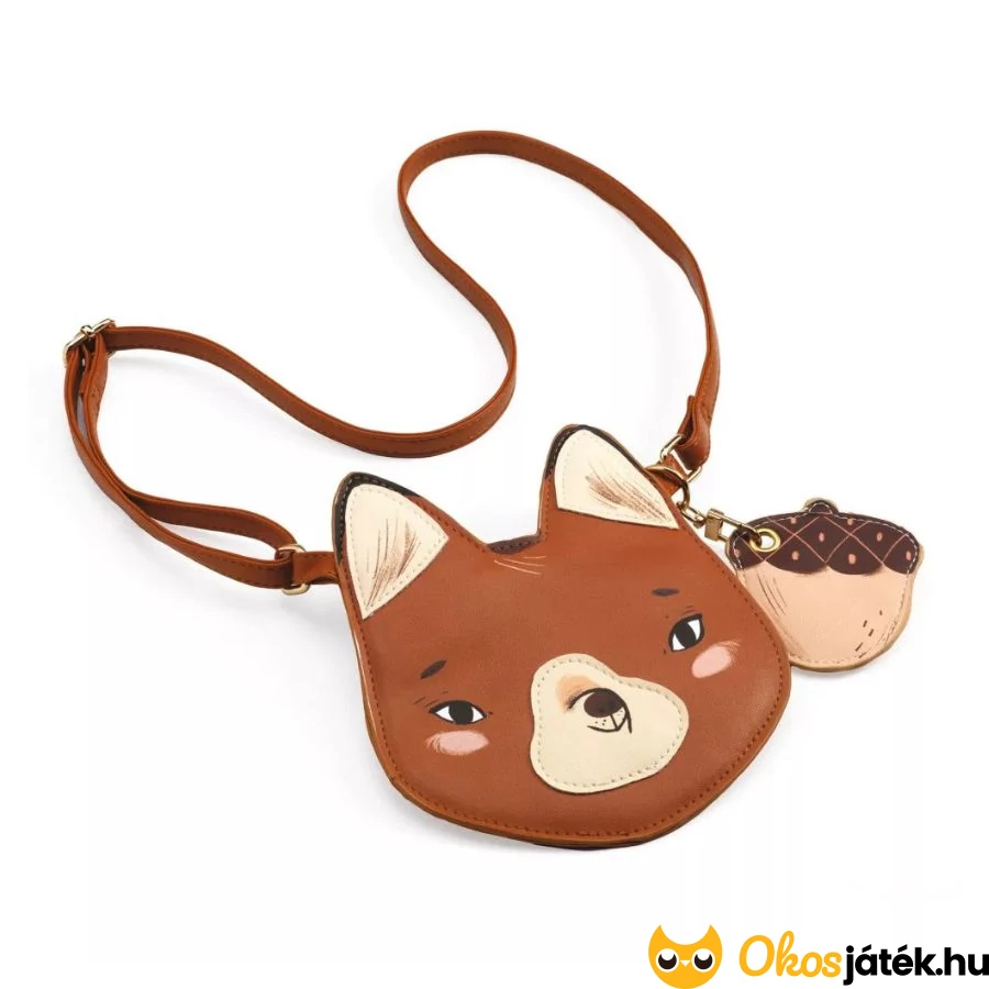 Aranyos, rókafejet ábrázoló táska a Djeco játékgyártótól, mely praktikus és stílusos kiegészítő lehet kisgyermekek számára. A könnyű, mégis strapabíró műbőr anyag ellenáll a mindennapi kalandoknak. Állítható hordozószíjának köszönhetően a táska kényelmesen hordható vállon, vagy akár kézben is.