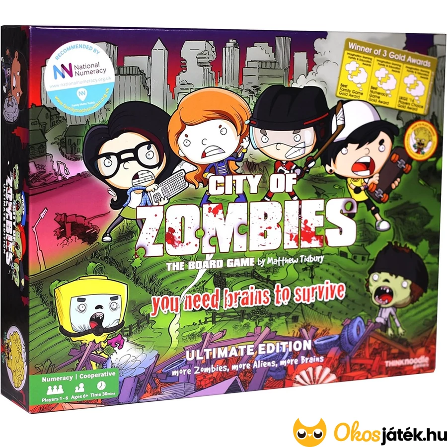 A City of Zombies egy családi, kooperatív társasjáték, amelyben 1-6 játékos dolgozik együtt, hogy megállítsa a zombik invázióját és megvédje a barikádot, amíg a mentőrepülőgép meg nem érkezik. Minden zombi kártyán van egy „erősség” szám, és ti dobott kockákat kombinált matematikai műveletekkel (a különböző nehézségi szintekben: összeadás, kivonás, szorzás, osztás, sőt a legnehezebb szinteken négyzetre emelés és négyzetgyök!) alakítotok úgy, hogy pontosan elérjétek ezt a számot és legyőzzétek a zombit. Ezáltal a játék miközben nagyon szórakoztató, természetes módon fejleszti a mentális számolást.