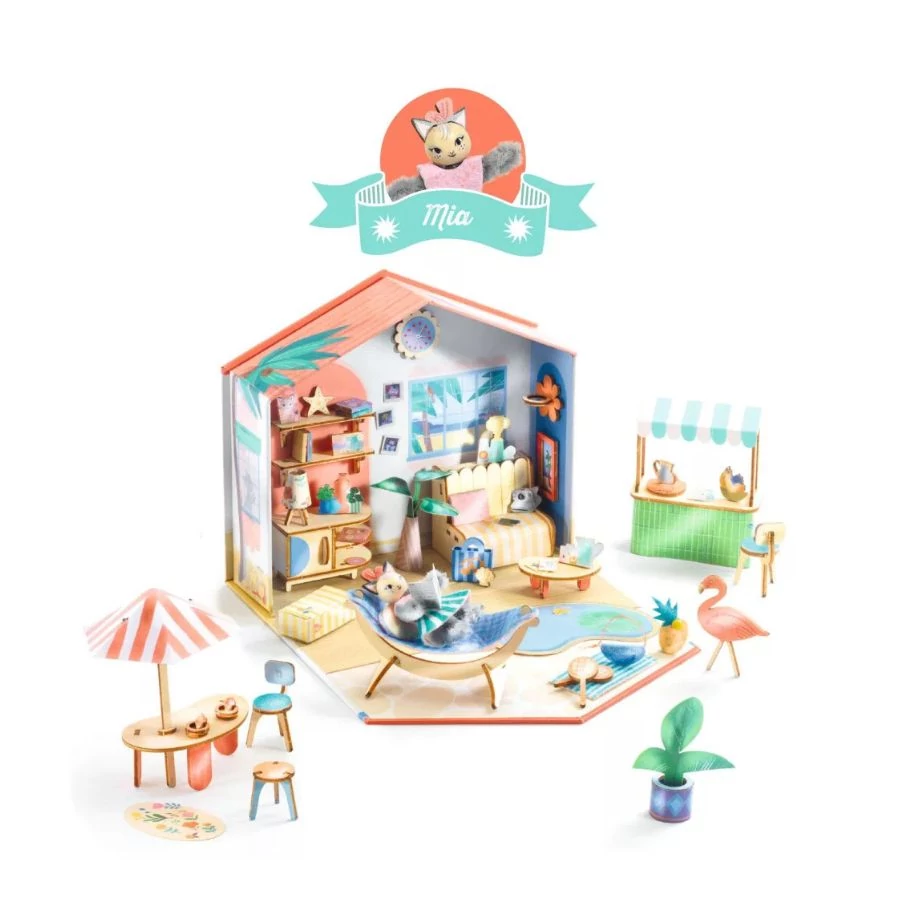 A Djeco kreatív készletével te álmodhatod meg Mia kis világát festéssel, ragasztással, díszítéssel.