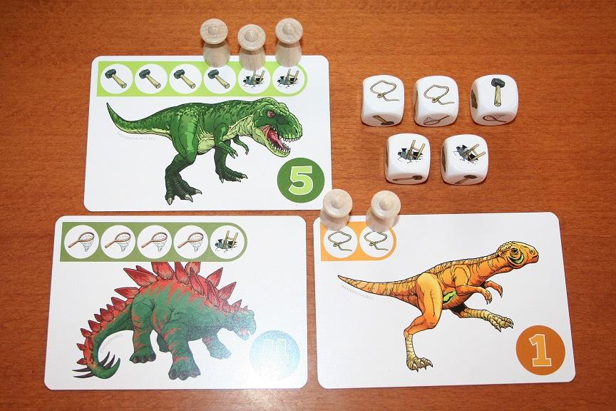 A játékban dinoszauruszokra vadászunk, természetesen a T-Rexért jár a legtöbb pont, ha azt le tudod vadászni. A dino elkapásához szükséges eszközöket és azok számát a kártya mutatja (pl. három lasszó és két háló). Kirakunk három dino képét (kártyáját). Dobunk az öt dobókockával. Ha van olyan ábra valamelyik kártyán amit dobtunk, akkor rakjunk rá egy vagy több fa bábut, attól függően, hogy mennyi egyezik (a dobott ábrákkal). Az egyezőséget mutató dobókockákat rakjuk félre. Eldönthetjük, hogy megállunk, vagy dobunk még a fennmaradó kockákkal. Amint úgy döntünk, hogy nem dobunk tovább, és egy (vagy több) kártyán lefedtük fa bábukkal az összes, dino elkapásához szükséges eszközt, azt jelenti, hogy sikerült "befognunk" az adott dinoszauruszt, elvesszük magunk elé, és kirakunk egy másik kártyát (dinot).
