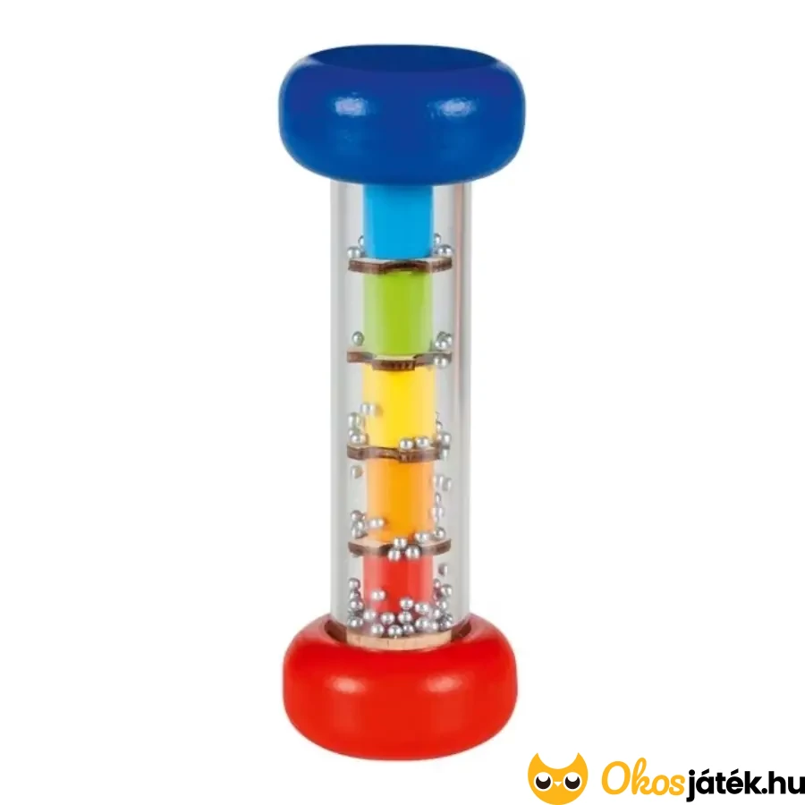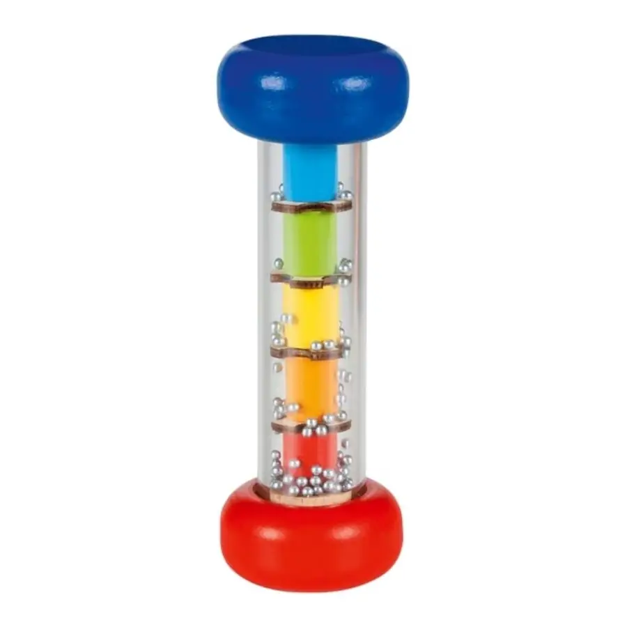 Az esőpálca élénk színeinek és kellemes hangjának köszönhetően, egyből megszeretteti magát a gyerekekkel. Az esőbot csörgő kiválóan alkalmas önálló játékhoz, megnyugtató alvás előtti elfoglaltsághoz is.