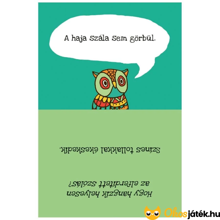 Minden kártya két részre osztott és kétoldalas. A kisbaglyos oldalon olvashatjuk a szólást/ közmondást, és a kártya hátulján ennek rövid magyarázatát. A kártyalap másik felén egy hiányos szólással/ közmondással találkozhatunk, aminek a megfejtését a kártya hátoldalán találjuk.