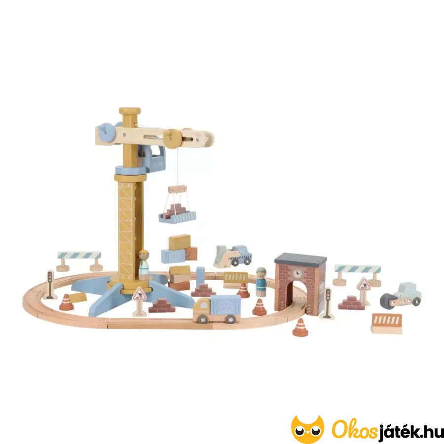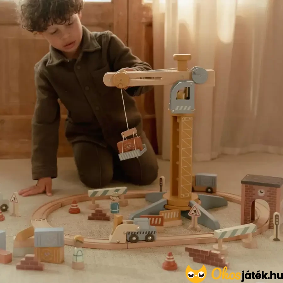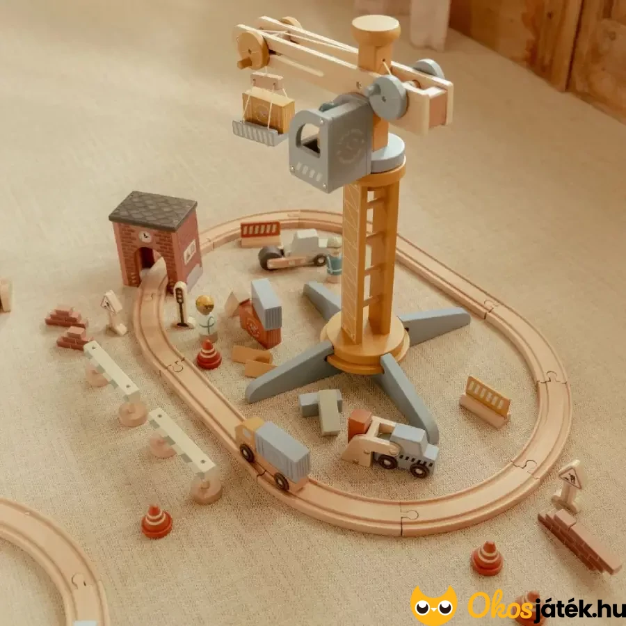 Darus játékkészlet vasúti pályával a holland Little Dutch játékgyártótól már 3 éves kortól, mellyel igazi munkaterület hozható létre, ahol daru segítségével emelhetnek, mozgathatnak rakományokat a gyerekek.