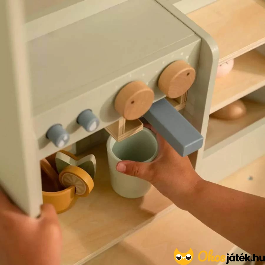 Ez a gyerekkonyha kiegészítő egy élethű kávézós élményt nyújt a gyerekeknek, emellett pedig számos készségük fejlődik. A szerepjáték során megtanulják a vendéglátás alapjait például a rendelés felvételét, a kiszolgálást, és azt, hogyan lehet figyelmesen és türelmesen együttműködni másokkal. A különböző apró tárgyak kezelése fejleszti a kézügyességet és a finommotorikát, miközben ösztönzi a kreativitást és a képzelőerőt.