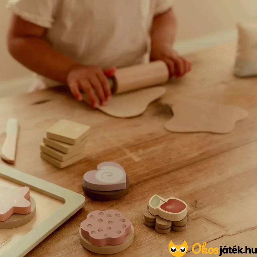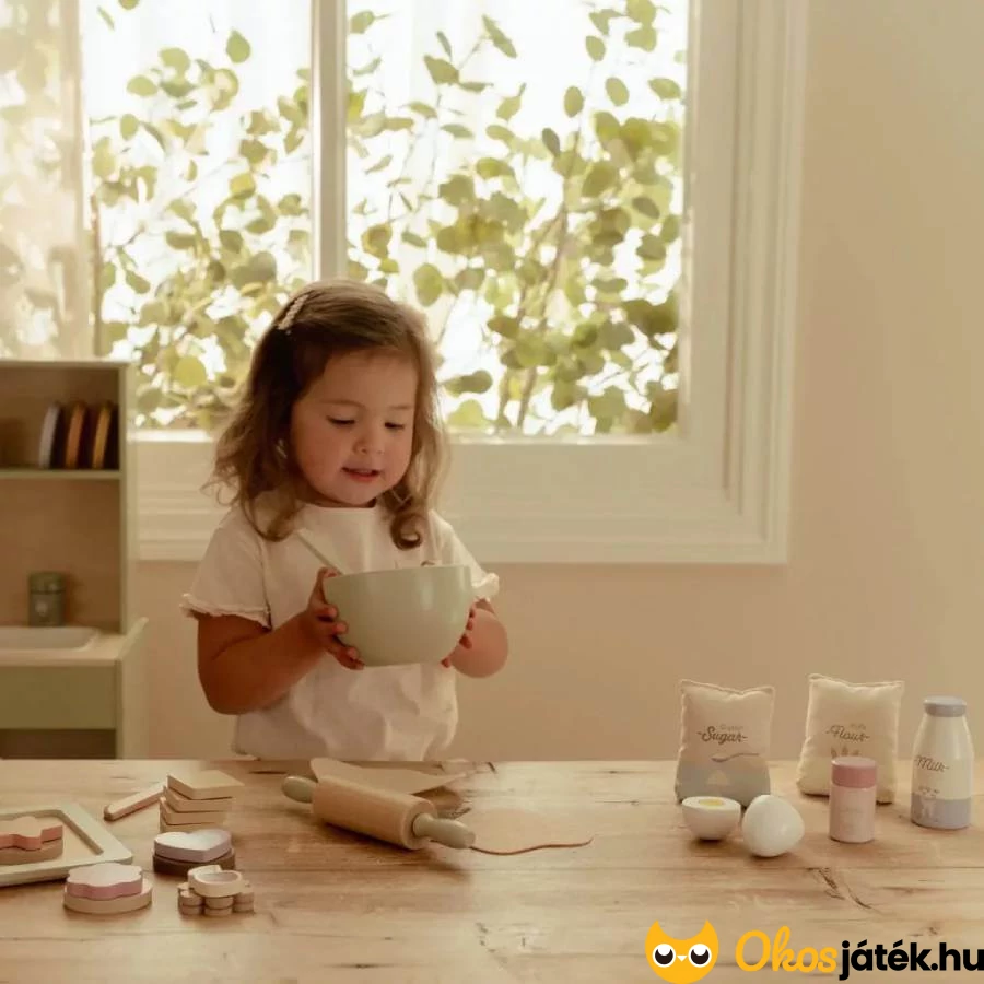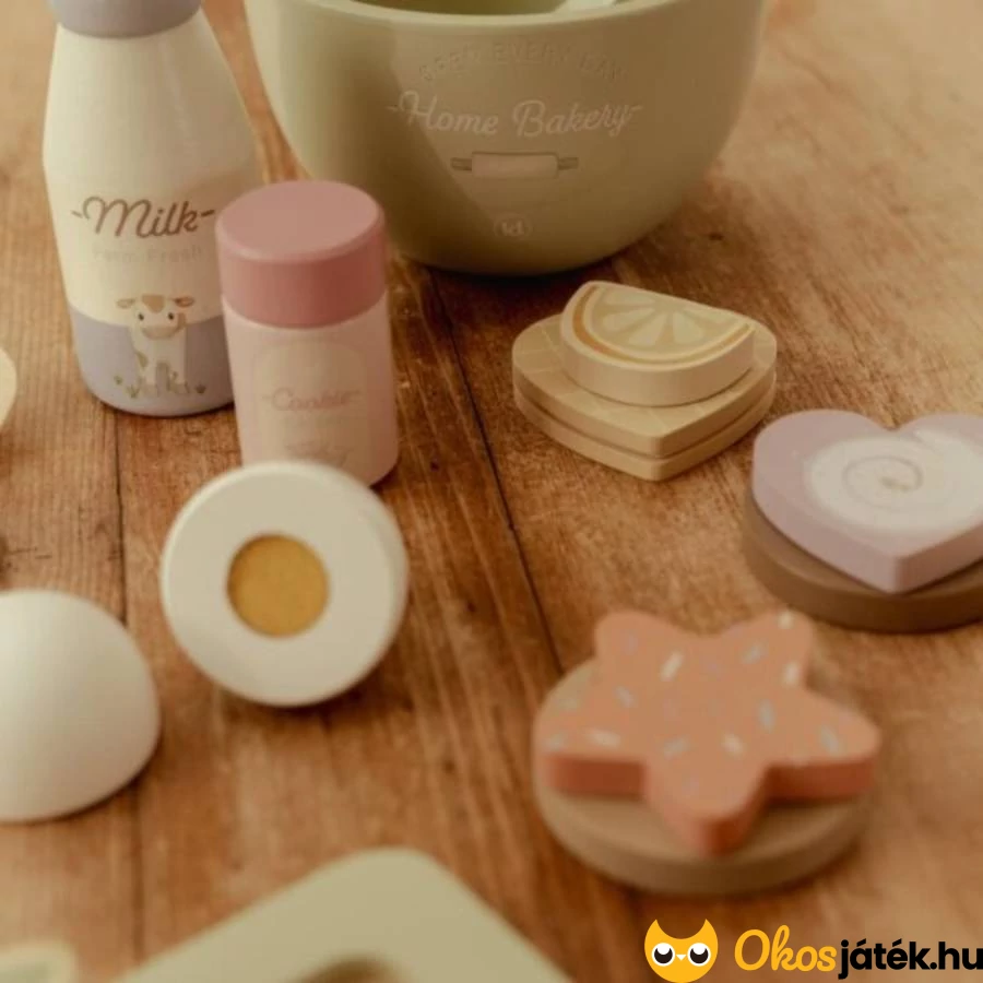 Igazi ínycsiklandozó gyerekkonyha kiegészítő szerepjátékhoz. Az élethű eszközök és sütemények igazi élménnyé varázsolják a sütést gyerekek számára, míg anya süt-főz a konyhában. A gyerekek előszeretettel utánozzák a felnőtteket, így ezzel a készlettel biztonságosan másolhatják a mozdulatokat és leköthetjük a gyermek figyelmét