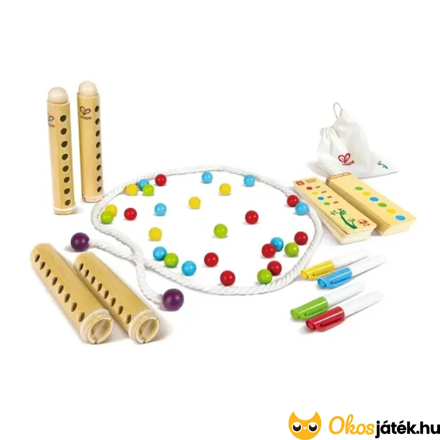 Az ügyességi játékot a társashoz tartozó vászonzsáknak köszönhetően a gyerekek bárhová magukkal tudják vinni.