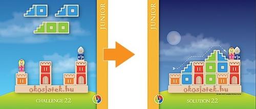 A Smart Games sokak által kedvelt játéka a Camelot Junior, egy igazán mesebeli kalandra hívja a gyermekeket. A feladat az, hogy építsenek egy utat a feladatfüzetben megadott utasítás alapján, amelyen a lovag eljut a királylányhoz. Négy torony, három lépcső és egy híd áll rendelkezésükre, ezekből lehet utat építeni a játékmezőre. A lovag ezeken az elemeken lépkedve haladhat, ugrani nem lehet, csak a lépcsőn és a falon juthat előrébb. Az elemek állhatnak vízszintesen és függőlegesen is, de természetesen mindig úgy kell elhelyezni őket, hogy a megfestett oldalukat lássuk. A feladatkártya először mindig megjelöl a játékosnak egy „alaphelyzetet”, amit fel kell építeni az alapzatra, s csak ez után lehet kezdeni az építkezést, a szintén előre kijelölt épületrészek segítségével. Ha már minden egyes darab a helyére került, akkor a lovag könnyen kiszabadíthatja a toronyban raboskodó, bús királylányt.