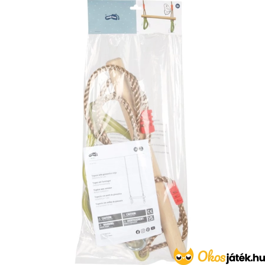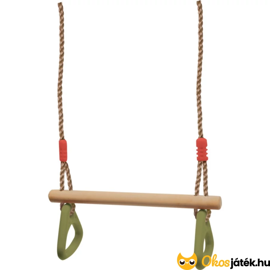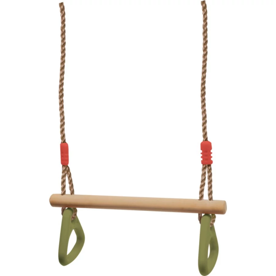 Ez a klasszikus kültéri sporteszköz trapézhintából és műanyag gyűrűkből áll, amely jól illeszkedik otthoni kalandpályákhoz vagy kerti játszóterekhez. Faházakhoz, fa szerkezetekhez is rögzíthető, ahol kapaszkodásra, felmászásra nyújt lehetőséget.