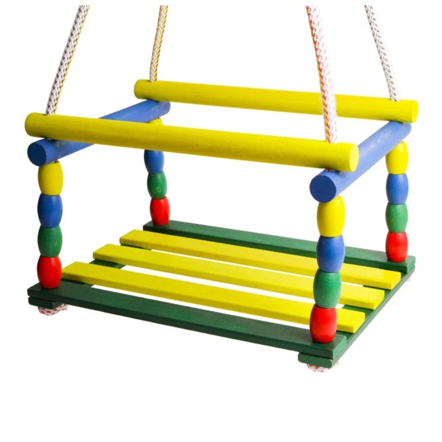 A Színes fa kültéri gyerekhinta erős keményfából készült, biztonságos fémkapcsokkal megerősítve.
