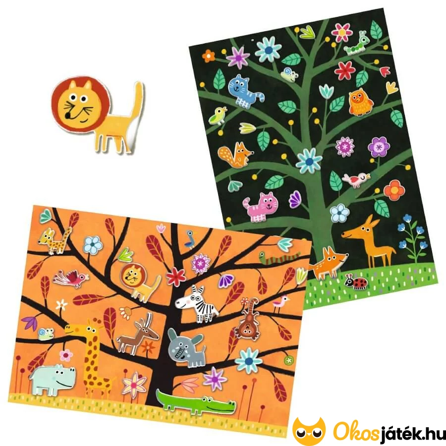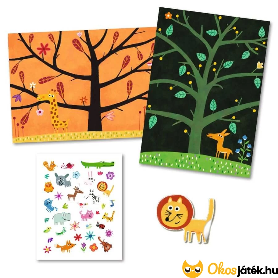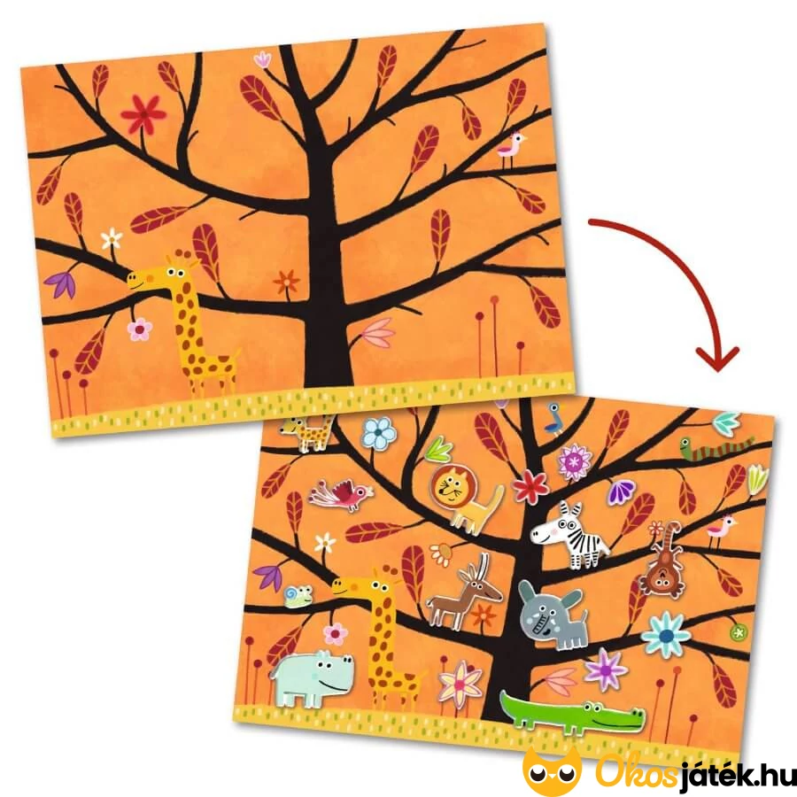 Az állatos matricák között virágokat is találhatnak, amiket a fa ágaira ragaszthatnak a szavanna, vagy az erdő állatai mellé.