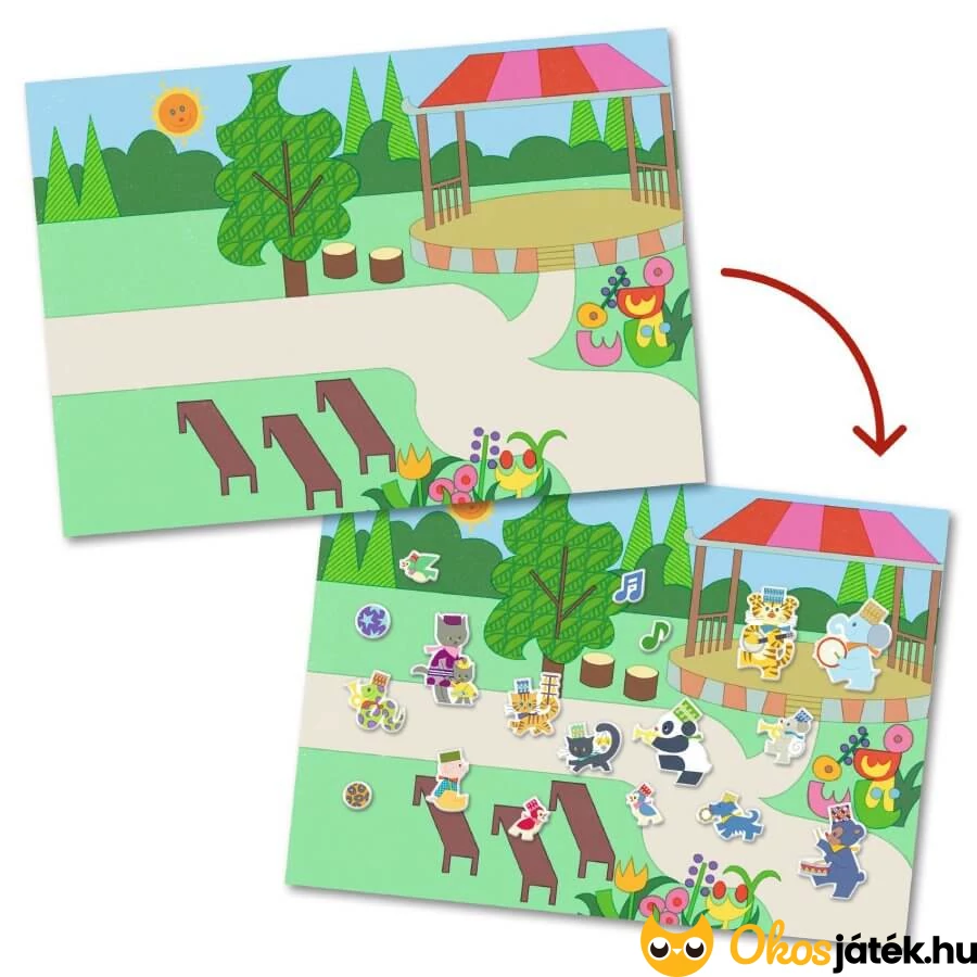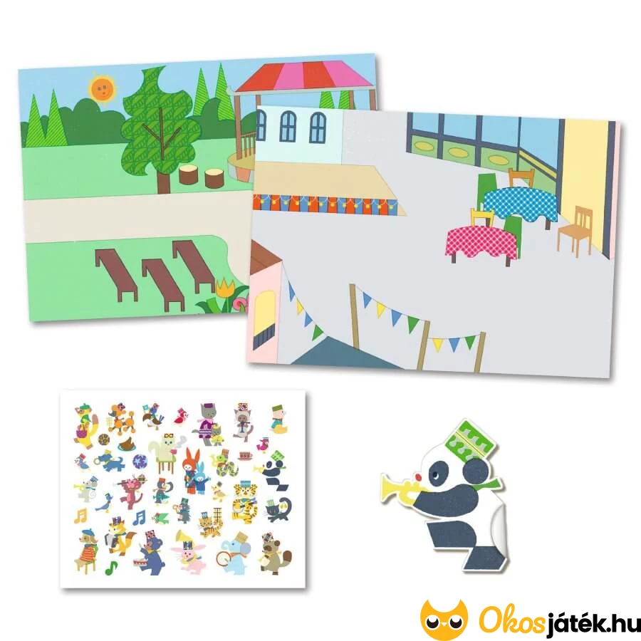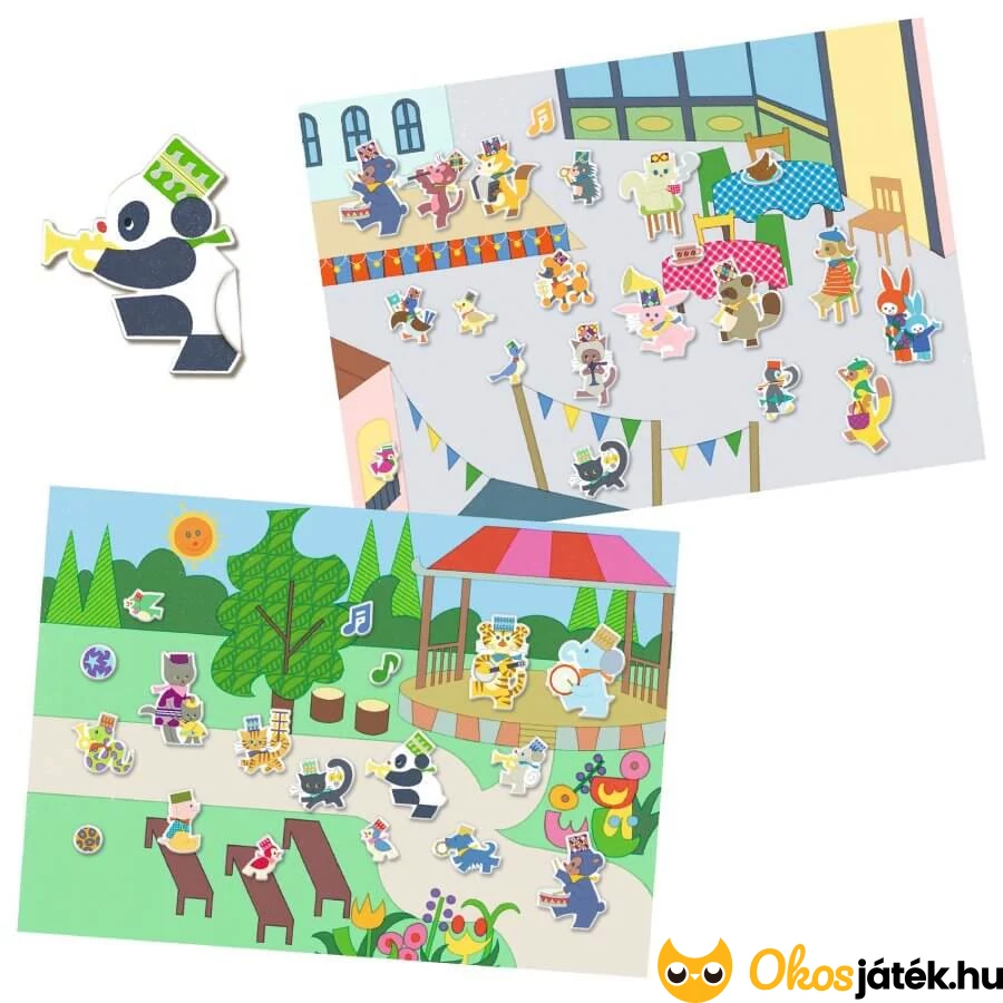 A csomagban két élénk, nagy háttérkép található, valamint több mint 30 vastag, pufi matrica, melyek újra és újra áthelyezhetők. Így minden alkalommal új, izgalmas jelenetek alkothatók!