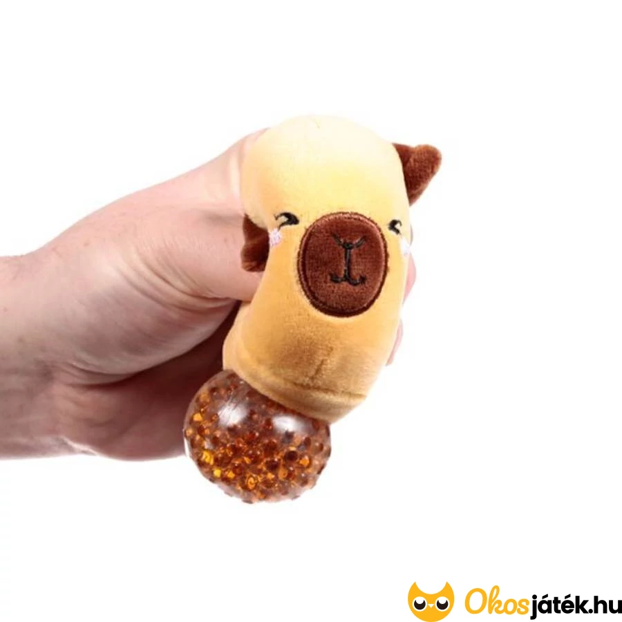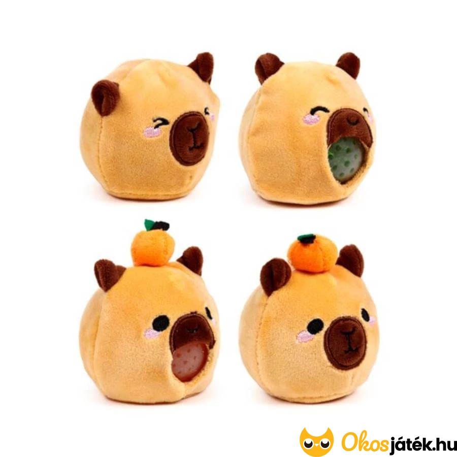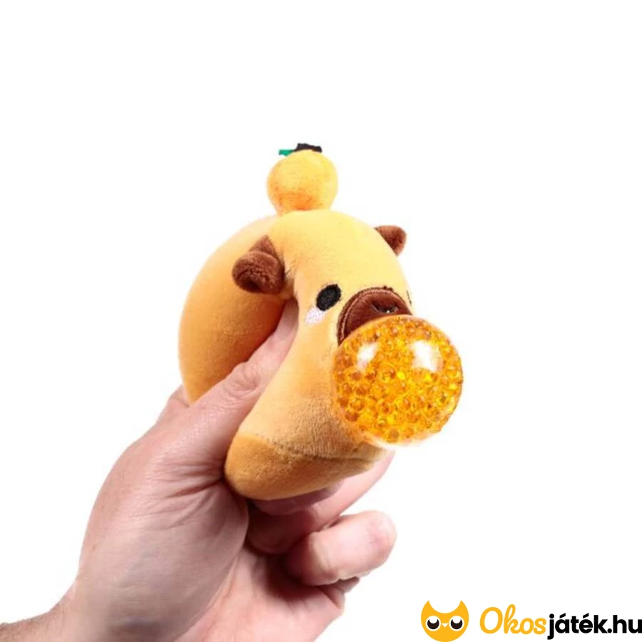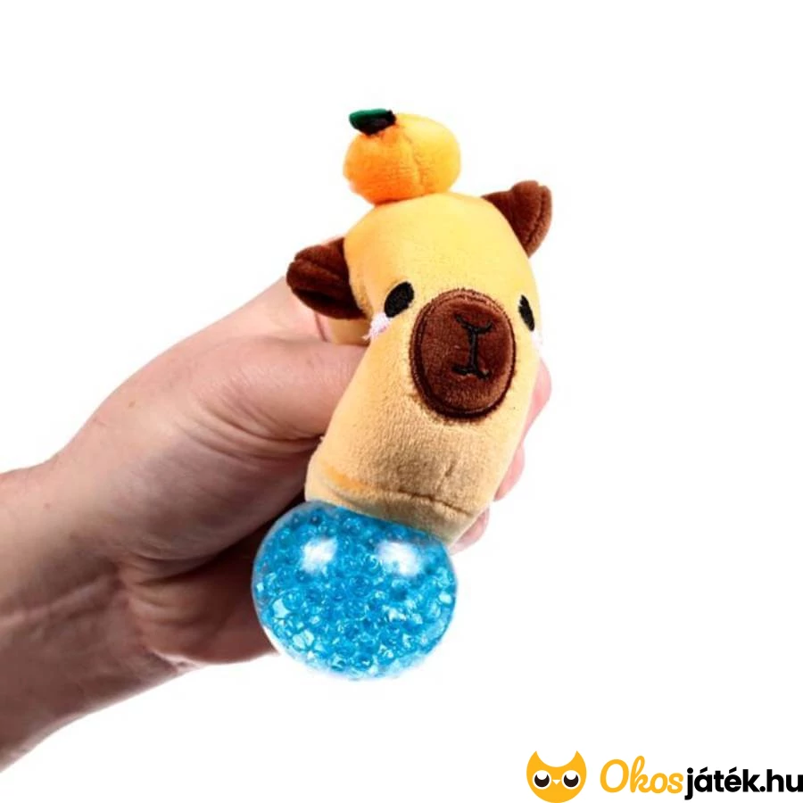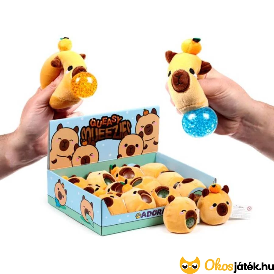 Plüss borítású, nyomkodható, aranyos kapibara állatkák, melyek belseje meg van töltve különböző színű zselés golyókkal. Kellemes tapintású és aranyos stresszoldó játék, amely nyomkodás közben lefoglalhatja és megnyugtathatja a gyermekeket, vagy akár a felnőtteket is.