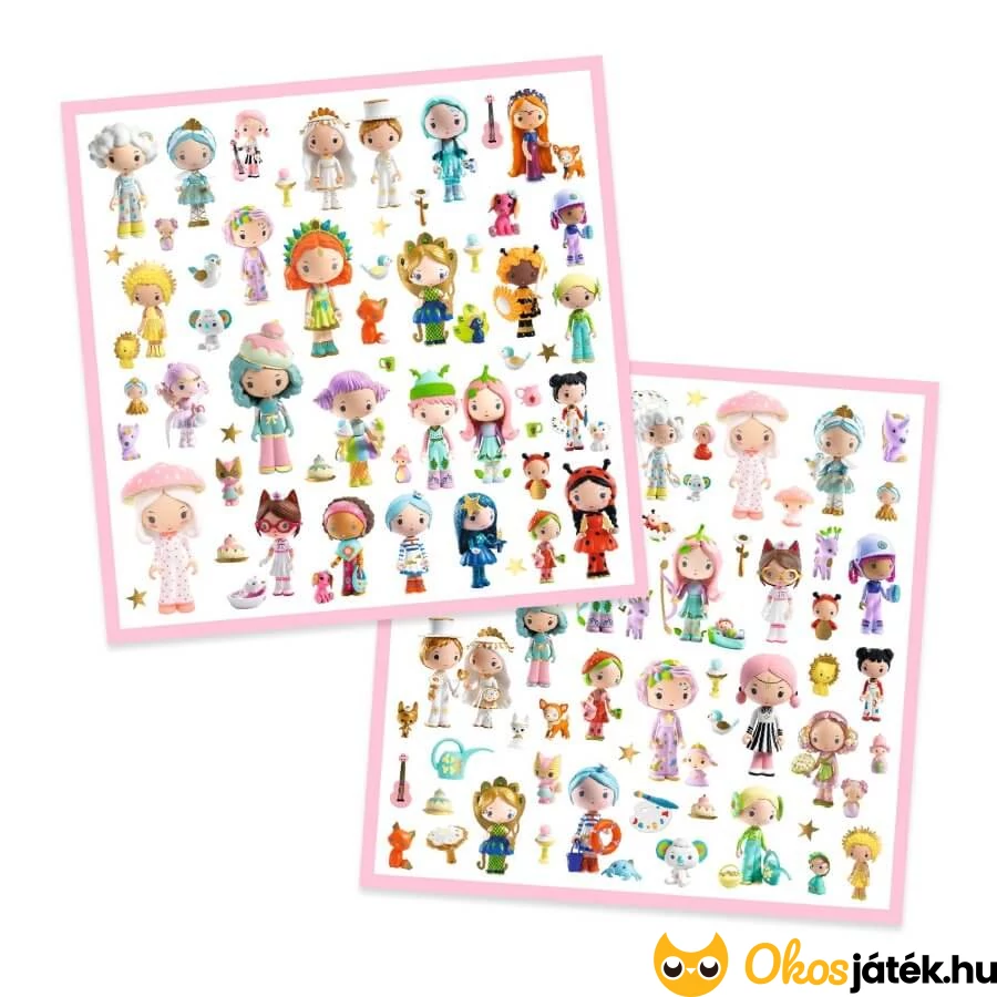 A Djeco tündéri babaház lakói és azok kiskedvencei jelennek meg a Tinyly matricaszett lapjain. Minden Tinyly szereplő matricája megtalálható a készletben: Elfe és Bolero, Berry és Lila, Amy és Mushy, Tutti és Frutti és még sokan mások.