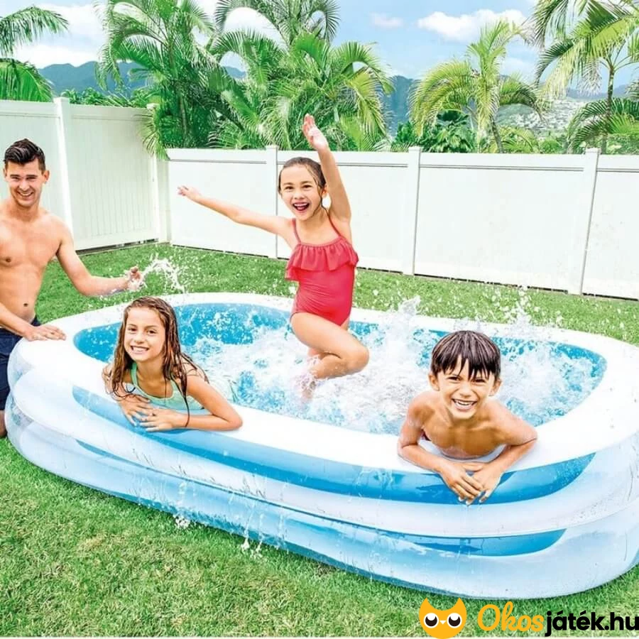 Felfújható családi medence az Intextől, mely tökéletes választás a nyári hőségben. Hűsítő élményt nyújt a kertben, amikor nem akarunk strandra menni.
