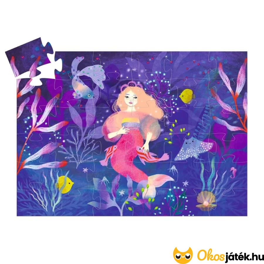 Különleges formadobozos, 36 darabos puzzle a Djeco játékgyártótól, mely egy gyönyörű sellőlányt ábrázol a tenger mélyén. Az elkészült kirakó 42 x 30 cm-es lesz.