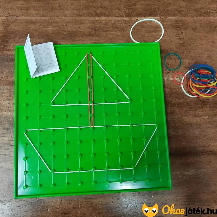 Kétoldalú geoboard tábla nagyobb méretben 23*23cm-es, 11*11 pöcökkel, amikre a gumit lehet húzni.