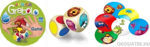 Megérkezett a már jól ismert Grabolo társasjáték Junior változata! A társas a reflexek, a memória és a megfigyelő készség fejlesztéséhez segíti hozzá a kicsiket. Dobj a két kockával, az megmutatja, hogy milyen színű és fajtájú állatot kell keresned. Koncentrálj, memorizálj és csapj le először te a kártyára! A játék csomagolási méretei: 5 x 9 x 9 cm.