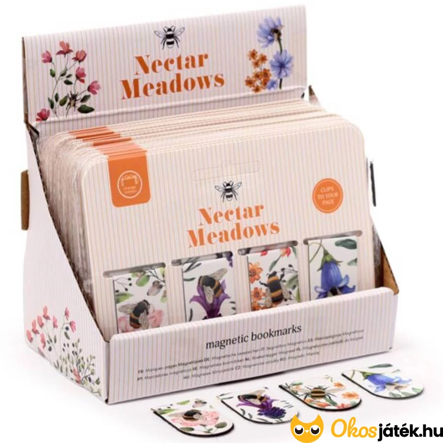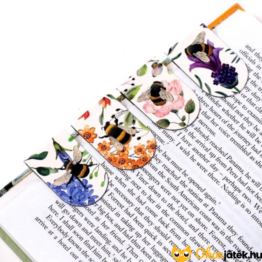 A mágneses könyvjelzők finoman illusztrált nektármezőket idéznek, méhecske- és virágmotívumokkal díszítve, így minden olvasás egy kis természetközeli élménnyel gazdagodik.