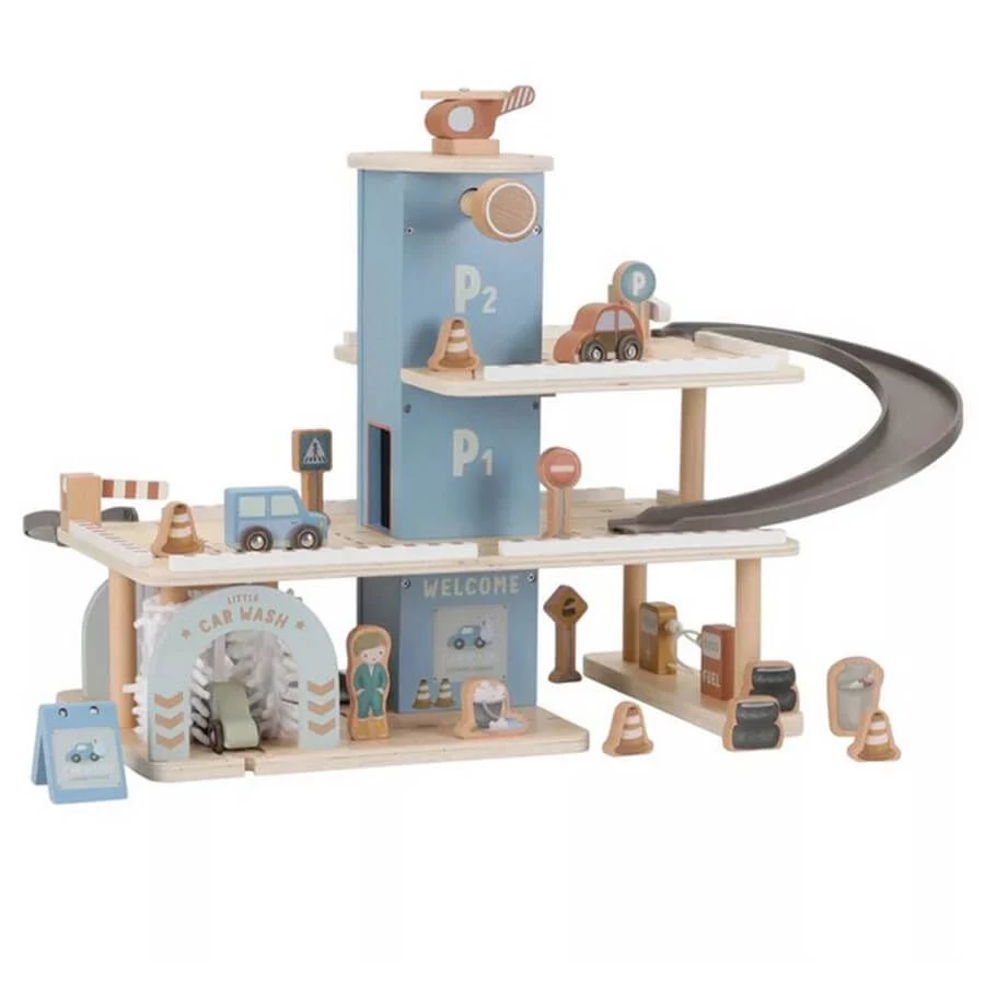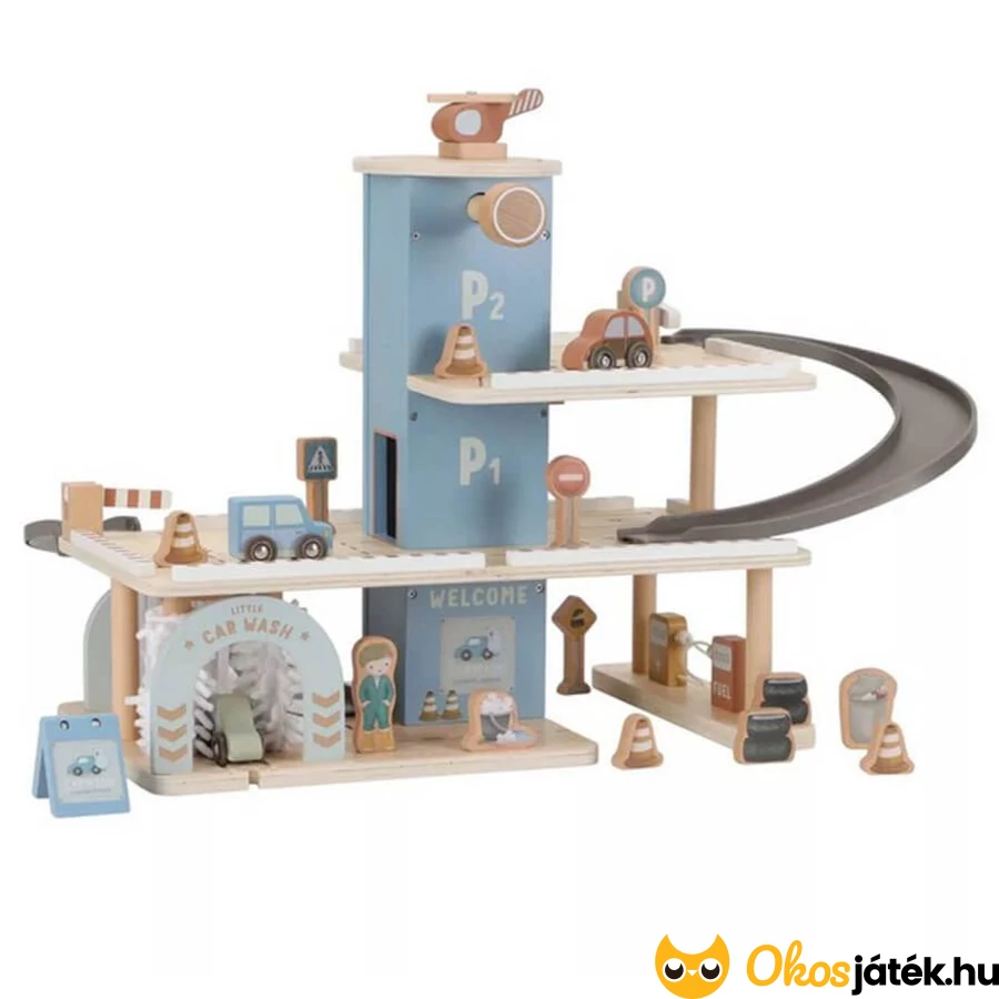 Emeletes fa parkolóház extra kiegészítőkkel a gyönyörű és kiváló minőségű játékokat gyártó Little Dutch holland játékgyártótól.