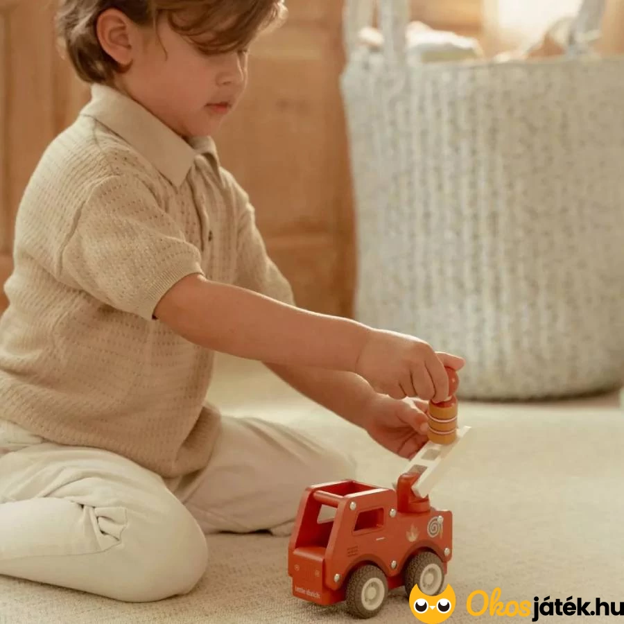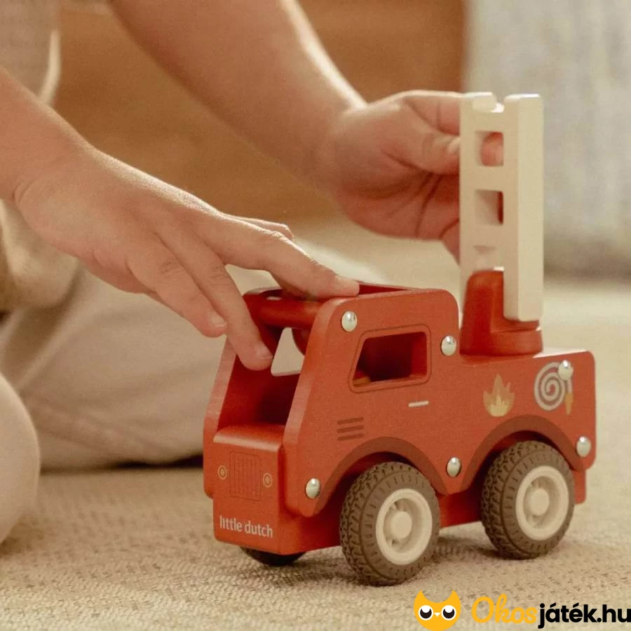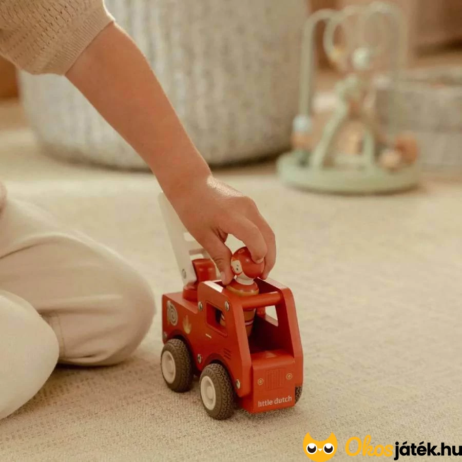 A tűzoltóautó könnyen kombinálható más Little Dutch városi járművekkel, például mentő- vagy rendőrautóval, így a játék univerzális városi készletté bővíthető. A pasztellszínek és a részletgazdag dizájn segítik az autók felismerését és az egyes szerepek megértését.