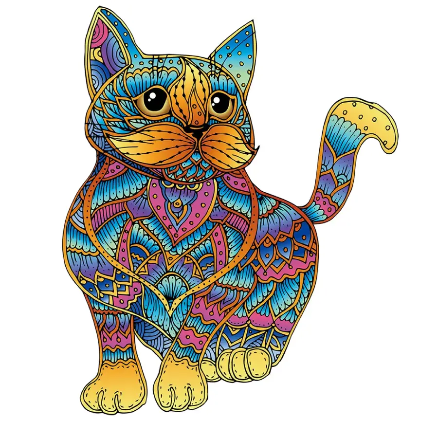 A cica motívumot egyedi formájú elemek alkotják, amelyek kirakása logikát és türelmet igényel – kissé nehezebb, mint elsőre gondolnánk.
