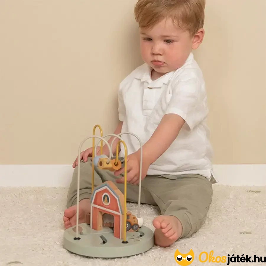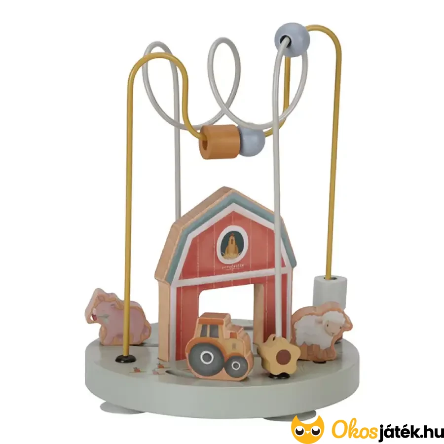 Little Dutch little Farm spirál golyóvezető, mely egy aranyos szórakoztató és praktikus fejlesztő játék. A játék célja, hogy a gyerekek a különböző formájú és méretű gyöngyöket vezessenek végig a színes fémspirálokon. A kompakt játék ezen kívül magában foglal egy kanyargó labirintust, melyen aranyos farm témájú alakzatokat kell végigvezetni a gyerekeknek.