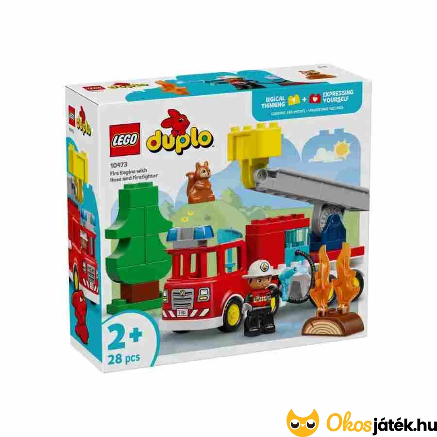 Izgalmas mentőakciók várják a 2 évesnél idősebb gyerekeket a LEGO Duplo Városi kalandok Tűzoltóautó tömlővel és tűzoltóval készlettel.