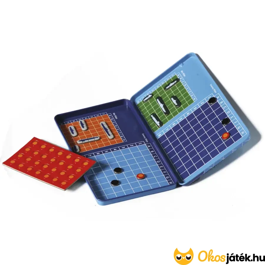 Praktikus kisdobozos útijáték fémdobozzal és mágneses elemekkel.
