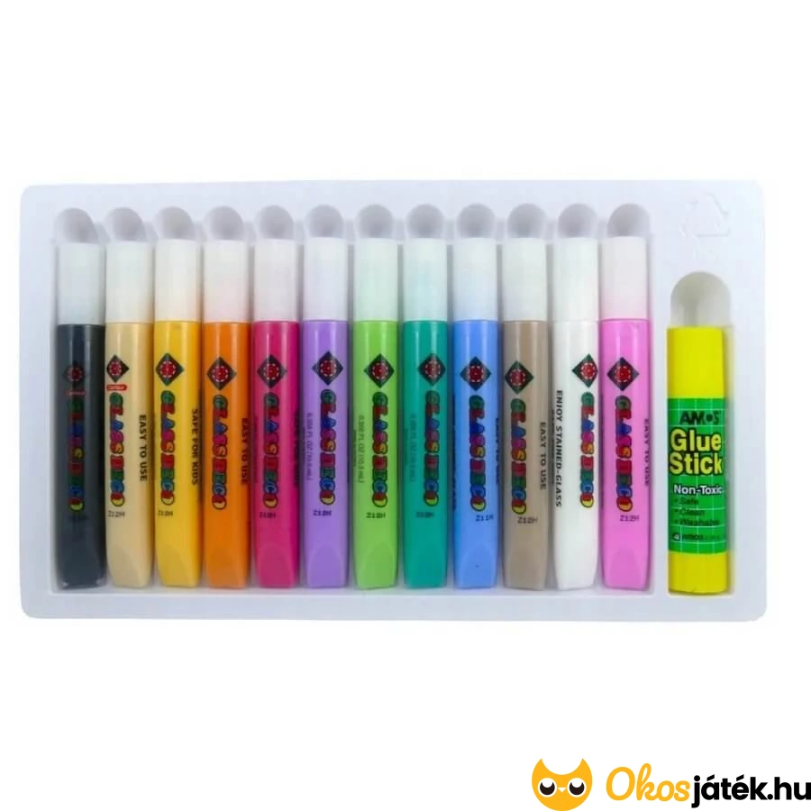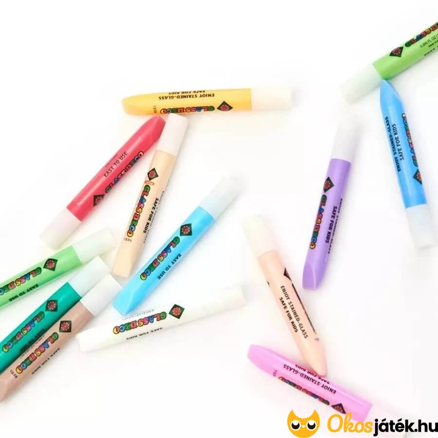 Üvegfestőkészlet, mely különböző felületek például üveg, tükör, porcelán, kerámia, ablak dekorálására szolgál.