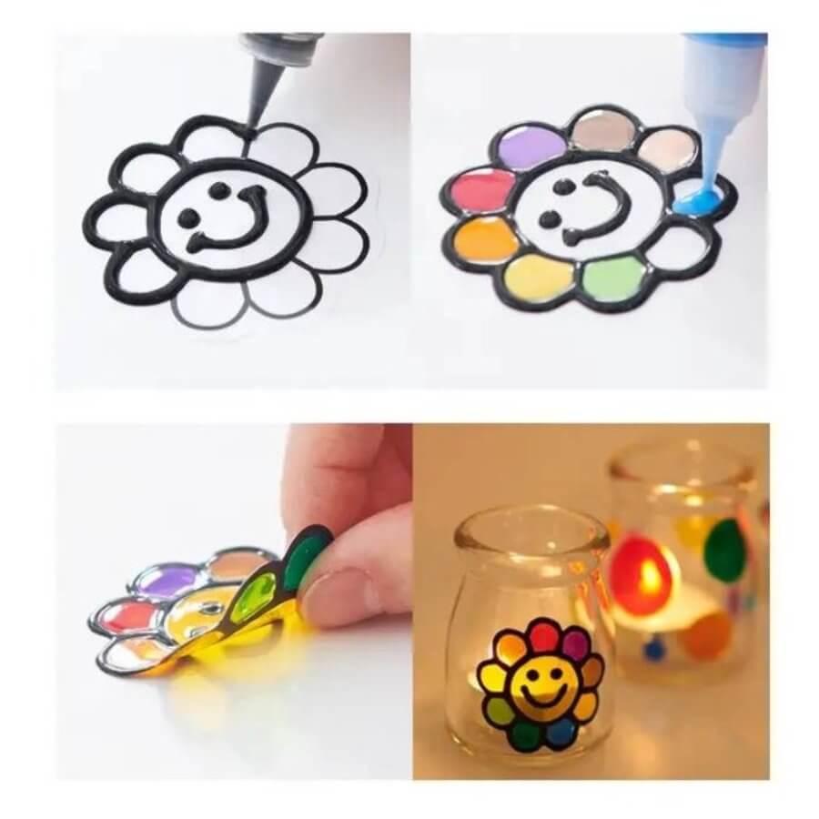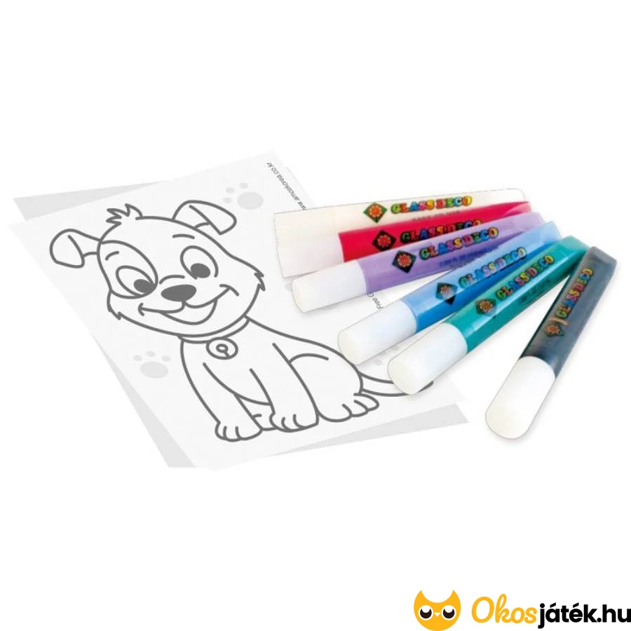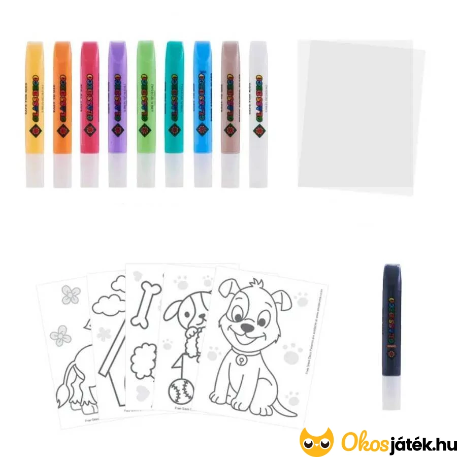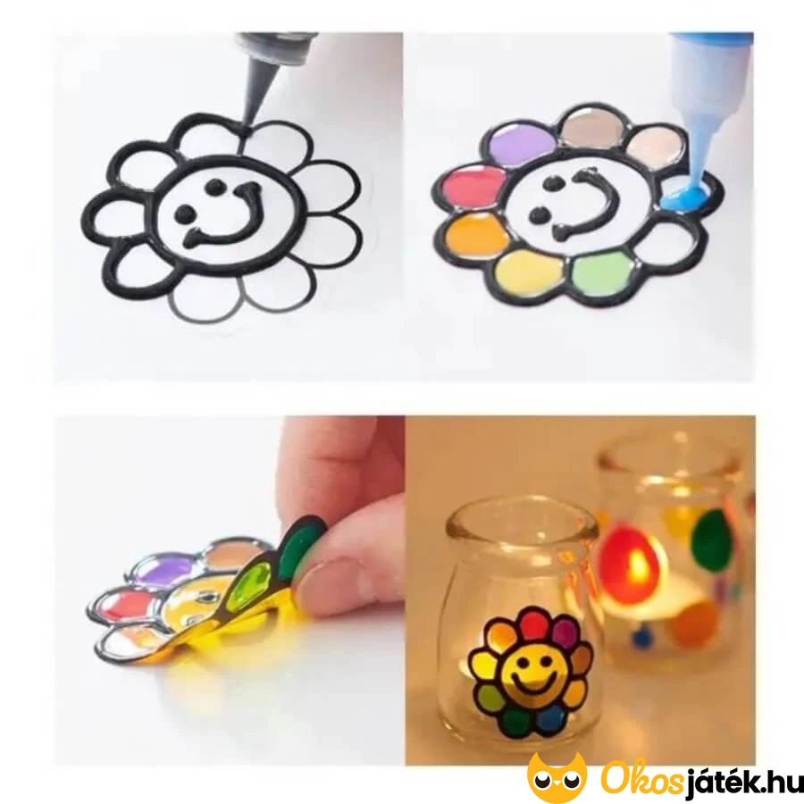 Üvegmatrica készítő, mely lehetővé teszi különböző sima felületek például üveg, tükör, porcelán, kerámia vagy akár ablak egyedi, színes dekorálását. Saját kézzel készített ajándékokat illetve látványos díszítőelemeket tudnak alkotni vele a gyerekek.