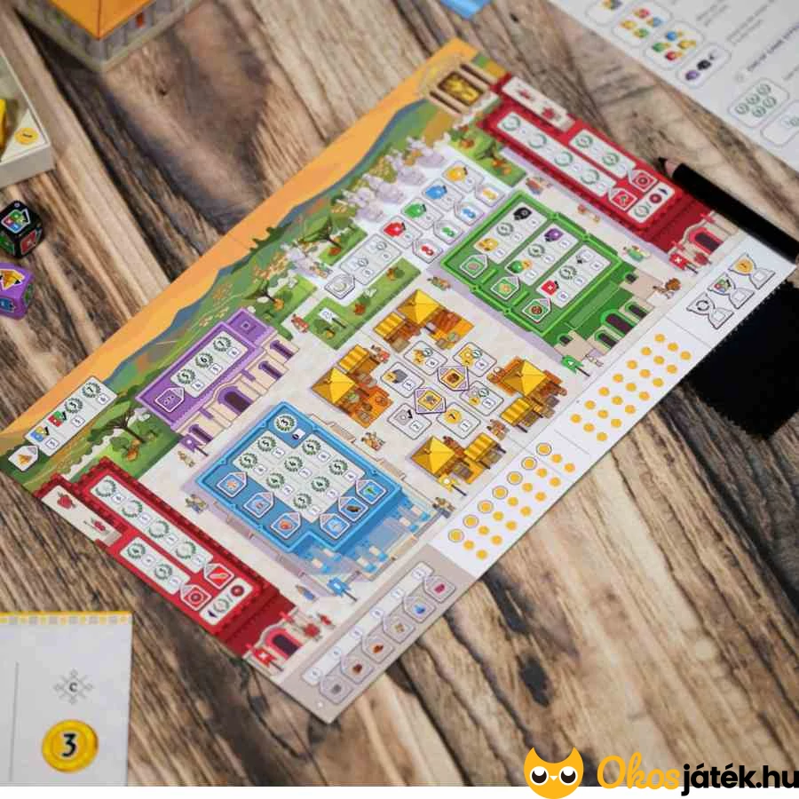 Ez a rendszer különleges dinamizmust ad a játéknak, hiszen a szerencse és a stratégia kéz a kézben halad, és minden alkalommal más irányba terelheti a városunk fejlődését. A játékmenetnek köszönhetően nincsenek üresjáratok: mindenki egyszerre gondolkodik és dönt, így a játék végig lendületes és közös élményt nyújt.