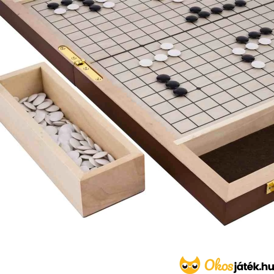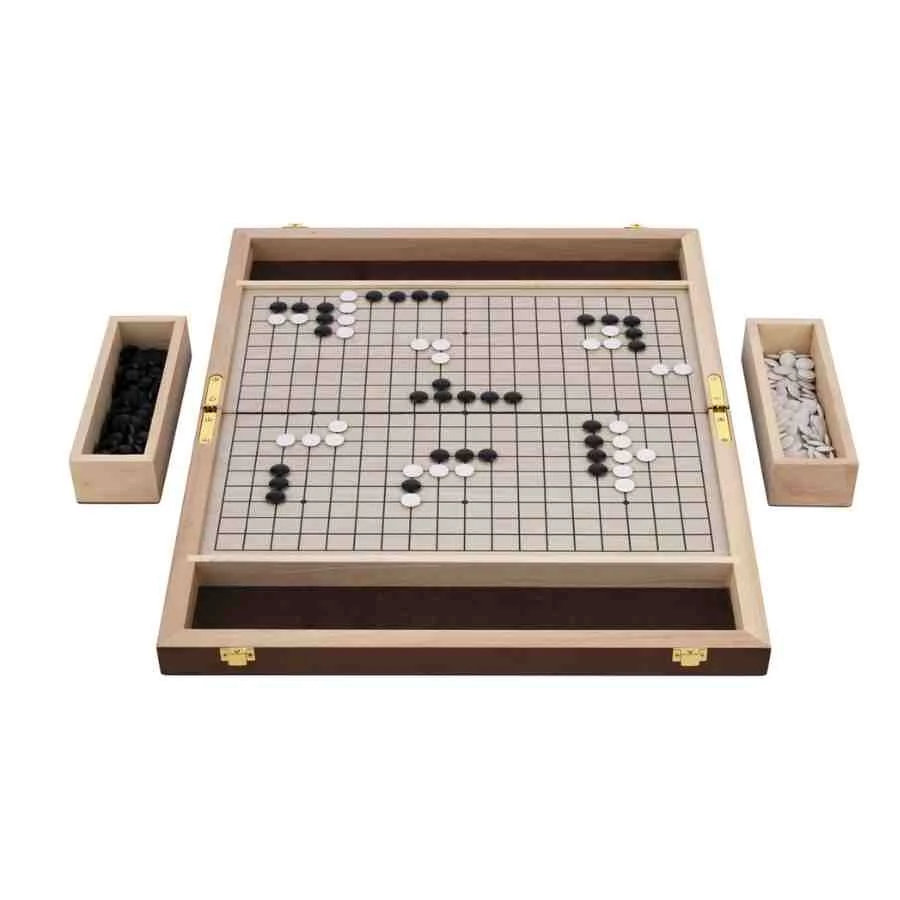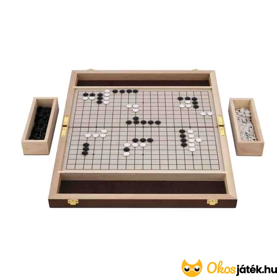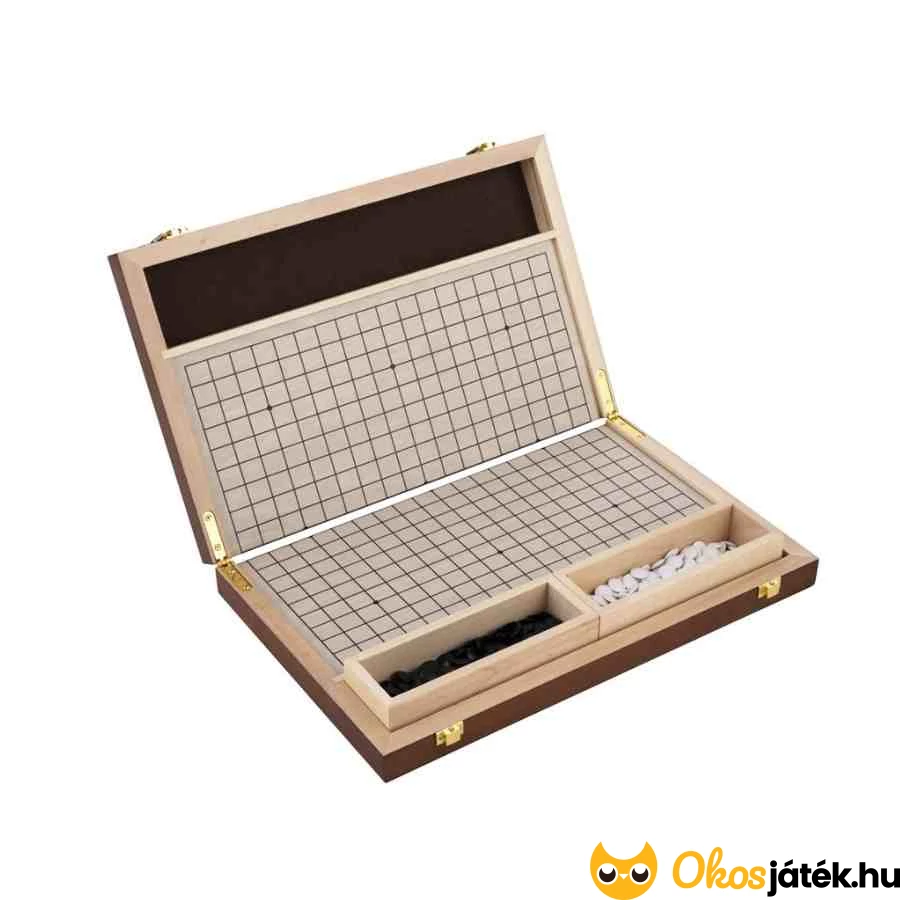 Prémium minőségű Go szett, fából készült csatos bőröndben. A Go egy ősi, keleti eredetű stratégiai társasjáték, melyben a cél minél nagyobb terület elfoglalása logikus, előrelátó lépésekkel.