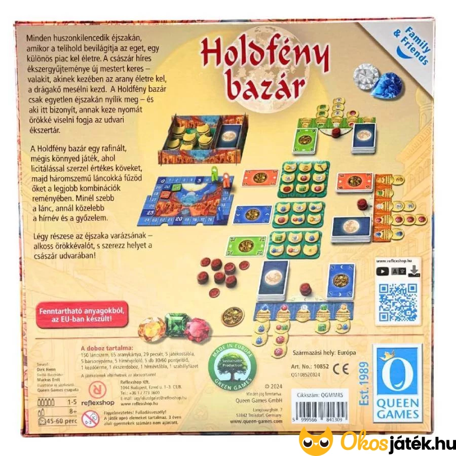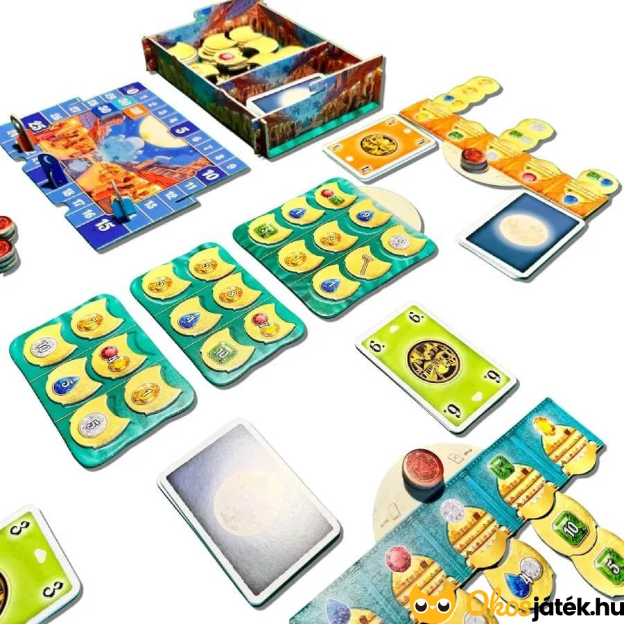 A Holdfény bazár elegáns, mégis könnyen tanulható játék, amely ötvözi a licitálás izgalmát és a kombinációépítés örömét. Szívesen ajánljuk családoknak, ahol több gyermek is van.