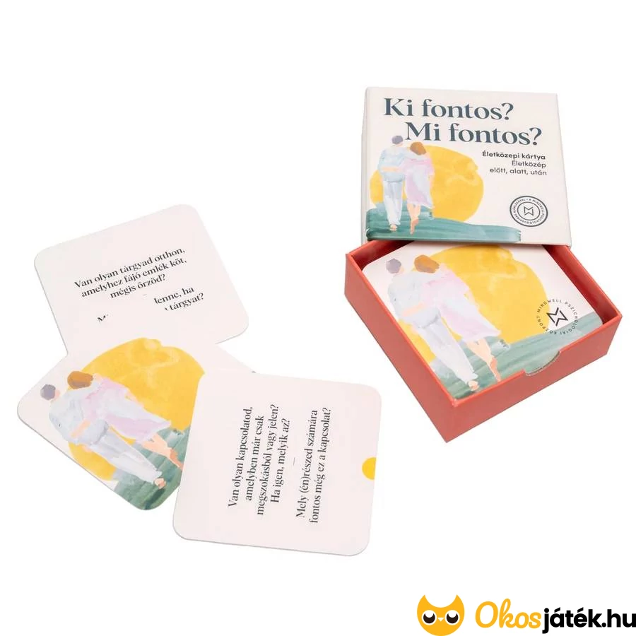 A Ki fontos? Mi fontos? pszichológiai kártyajáték lapjai nem csak kérdéseket tesznek fel, hanem irányt is mutatnak: hogyan lehet tudatosan és őszintén átgondolni az élet egyes területeit és a jövővel kapcsolatos terveket.