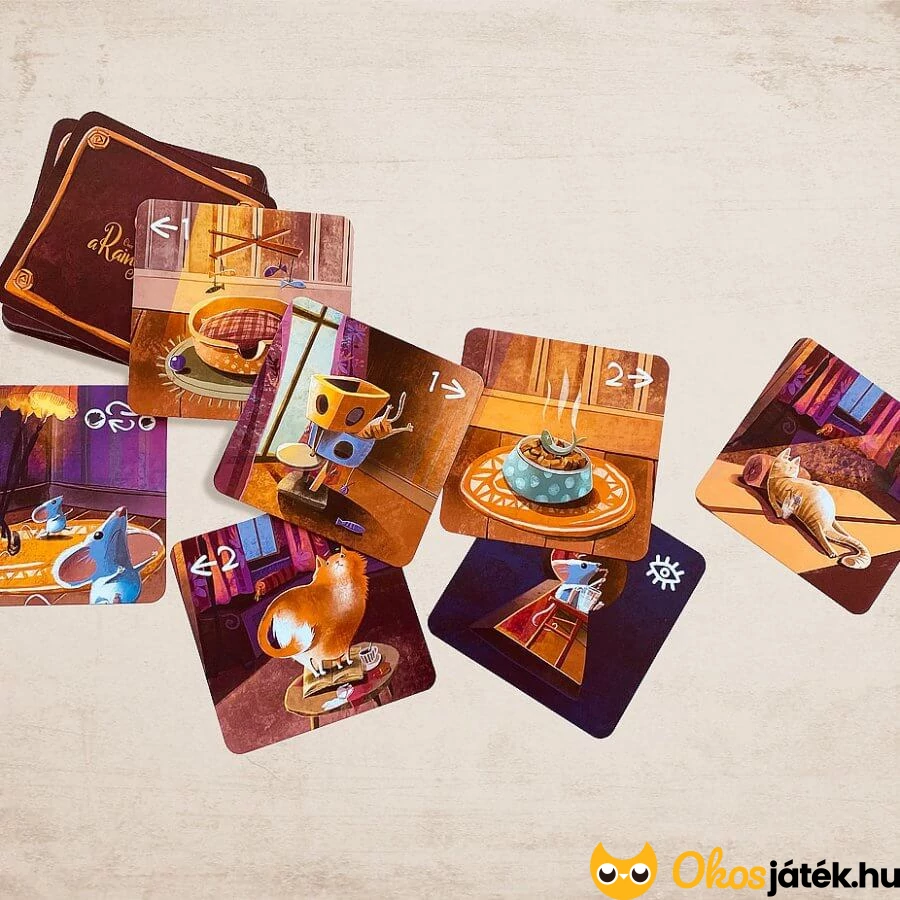 Versenyzős, gyűjtögetős társasjáték cicákkal, egerekkel és kutyussal.
