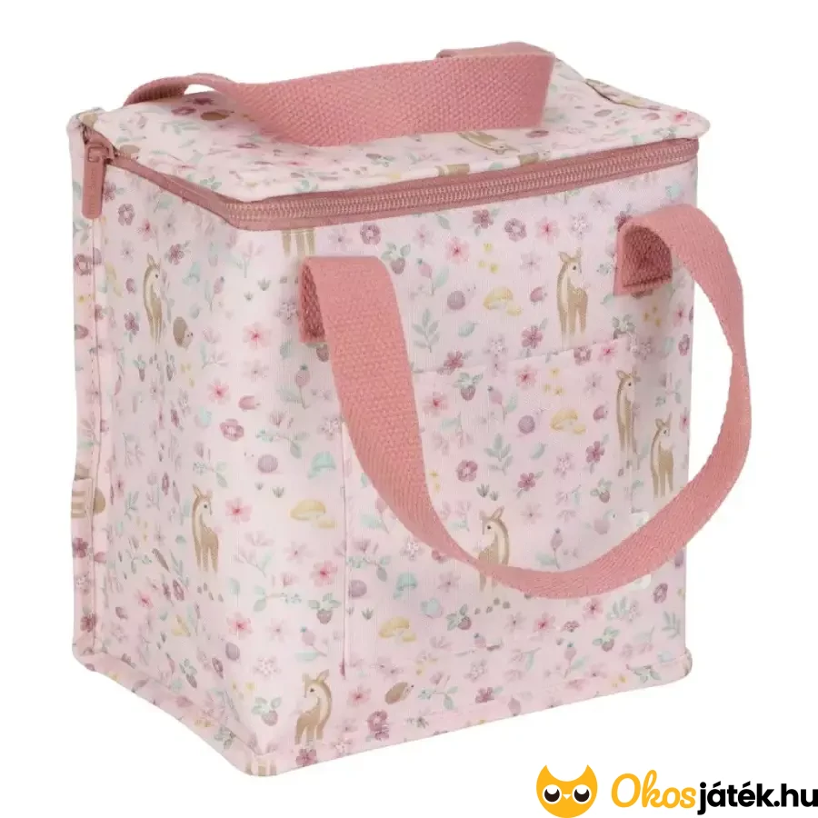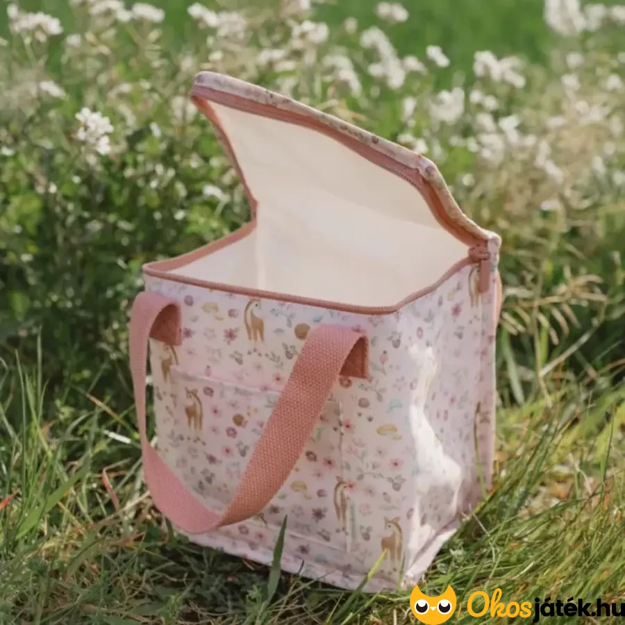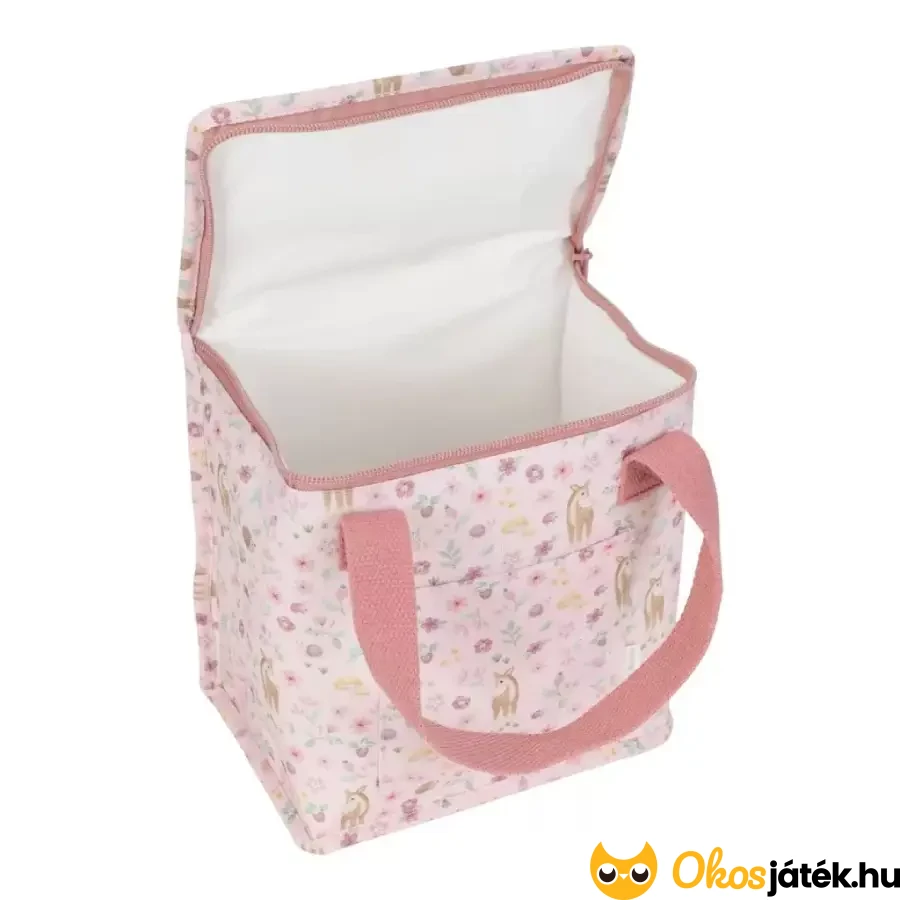 A táska külsején a Little Dutch jól ismert Fariy Garden mintája látható. Gyönyörű, pasztellszínű virágok, erdei állatok díszítik ezt mesebeli kertet idéző táskát. A hűtőtáska cipzárral záródik, ami könnyű nyitást és biztonságos zárást biztosít. A tetején található praktikus fogantyúval a hűtőtáska egyszerűen hordozható, így a gyerekeknek is könnyű lesz cipelni a sok finomsággal telipakolt táskát.