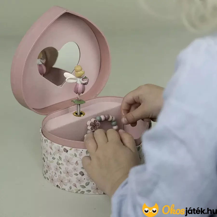 Gyönyörű szép, zenélő Little Dutch ékszerdoboz, melynek szív alakú dobozának belsejében egy kedves tündér forog, ha felhúzzuk a játékot.