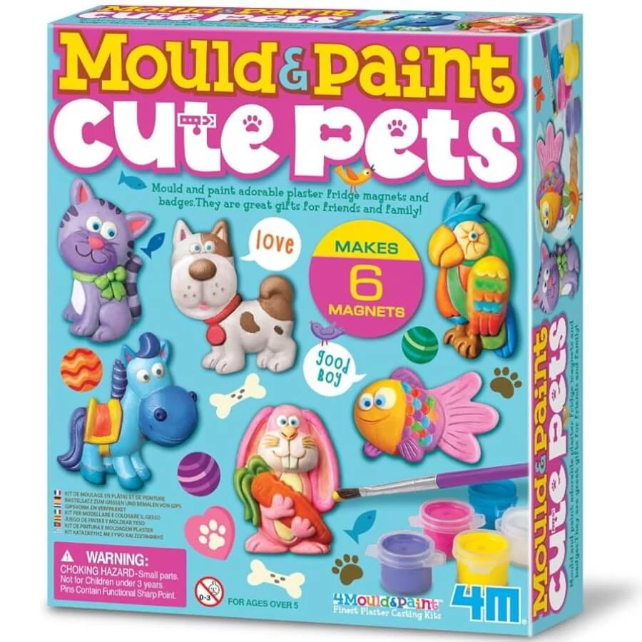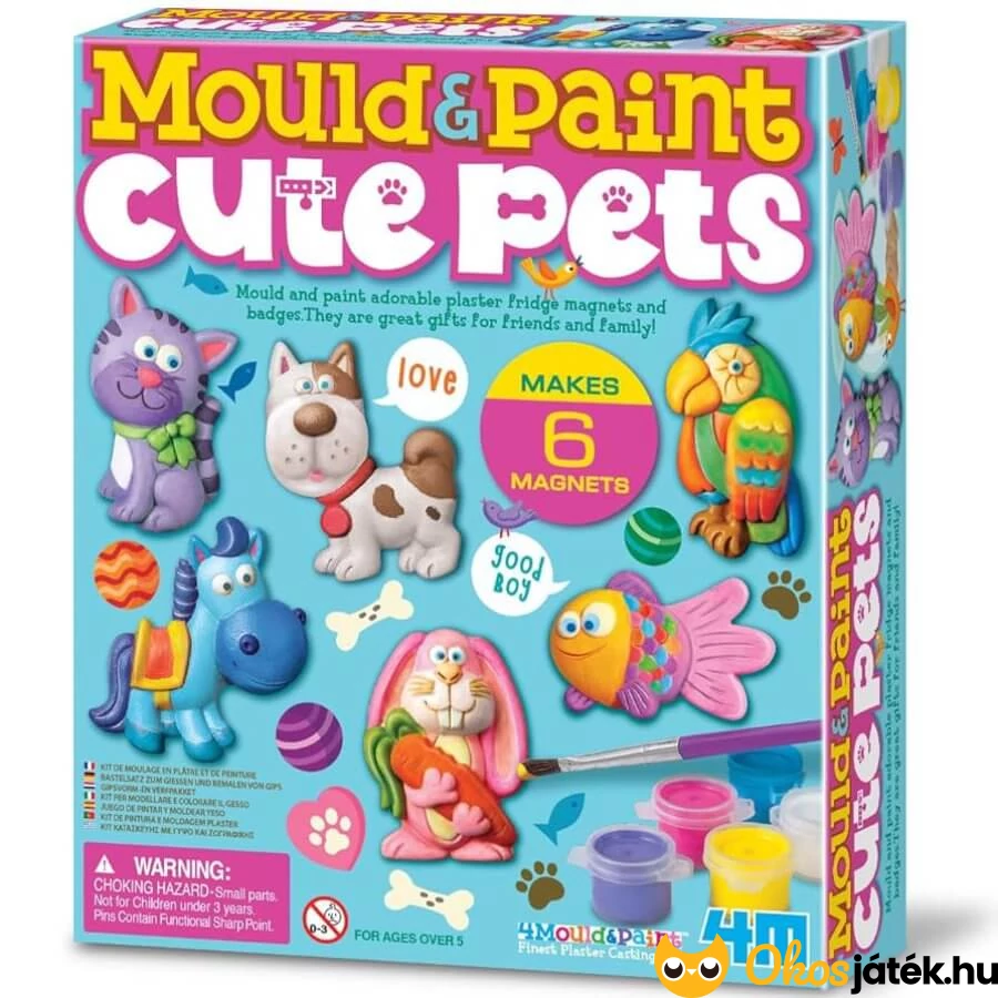 Állatos gipszkiöntő szett gyerekeknek 5 éves kortól, mellyel 6 aranyos, domború állatot lehet elkészíteni és tetszés szerint kifesteni. A kedves kis állatokat akár a hűtőre is ki lehet tenni a dobozban lévő mágneseknek köszönhetően.