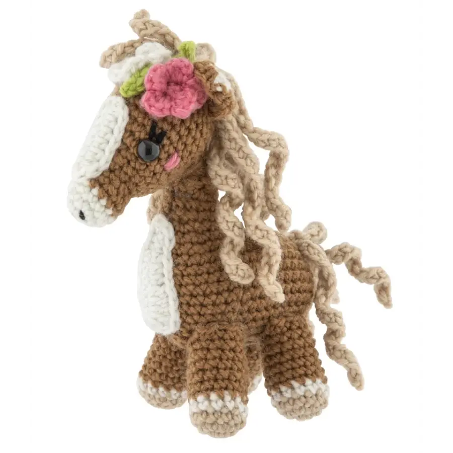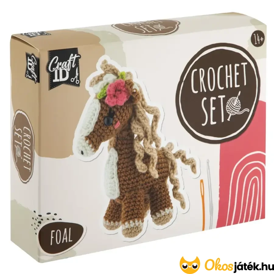 Horgolt állat készítő szett, melyben az útmutató ábráit követve egy lovacskát készíthetnek el a nagyobb gyerekek.