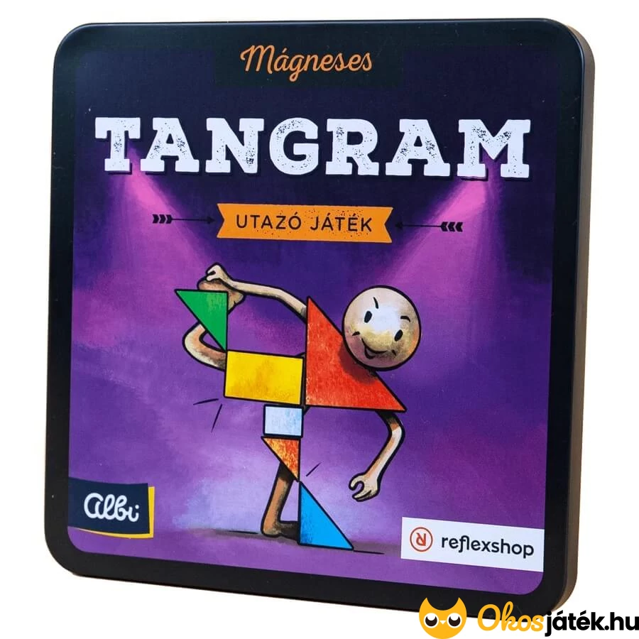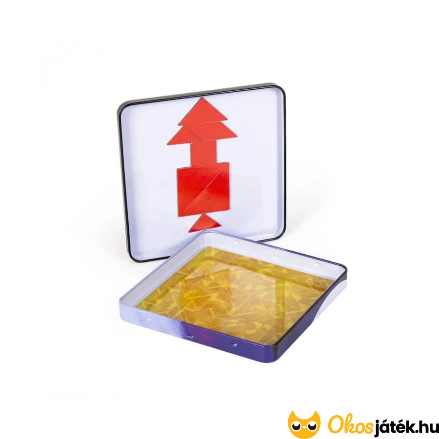Kompakt fémdobozos, mágneses tangram játék, mellyel egyedül, vagy akár többen is lehet játszani. A játékhoz tartozik egy ötletfüzet is, feladatokkal, fejtörőkkel.