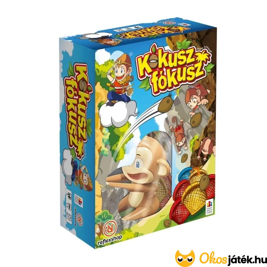 Vicces, könnyed majmos ügyességi játék 6 éves kortól, melyben kókuszdiókat kell ügyesen kilőni a majmos katapulttal, hogy a poharakba találjunk. A játékot az nyeri, akinek sikerül egy piramist felépítenie a megszerzett poharakból.