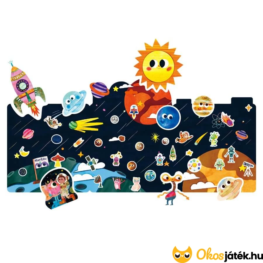 Az űr témájú matricagyűjtő és a matricák kiváló minőségűek, szépek, igényesek, rengeteg fejlesztési lehetőséget tartogatnak.