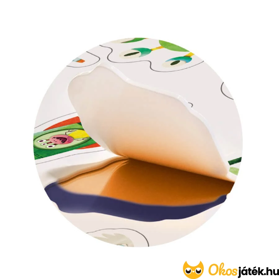 Az egyik lapon minden matricának saját helye van, így a kicsik a megfelelő helyre ragasztva tárolhatják őket. Ez a lehetőség az azonosság felismerését kiválóan fejleszti.