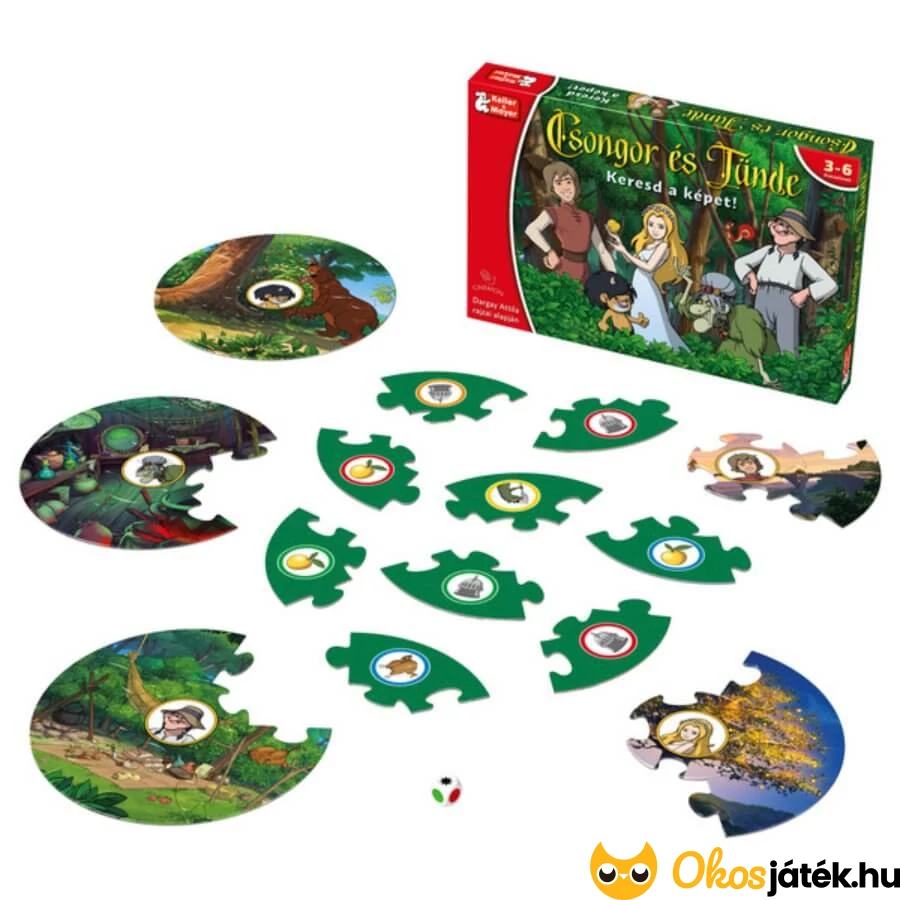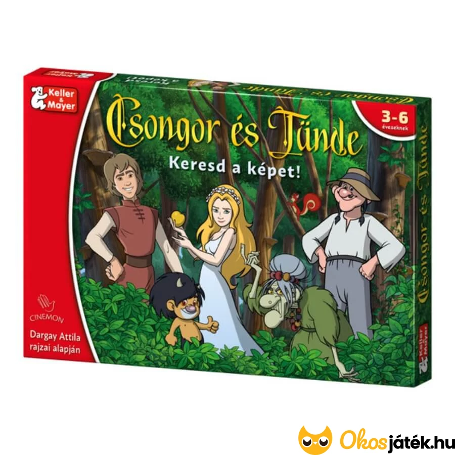 Színfelismerős, képkirakós könnyed családi társasjáték óvodás korú gyerekeknek már 3 éves kortól a Csongor és Tünde mese szereplőivel, Dargay Attila rajzaival, a Keller és Mayer magyar játékgyártótól.