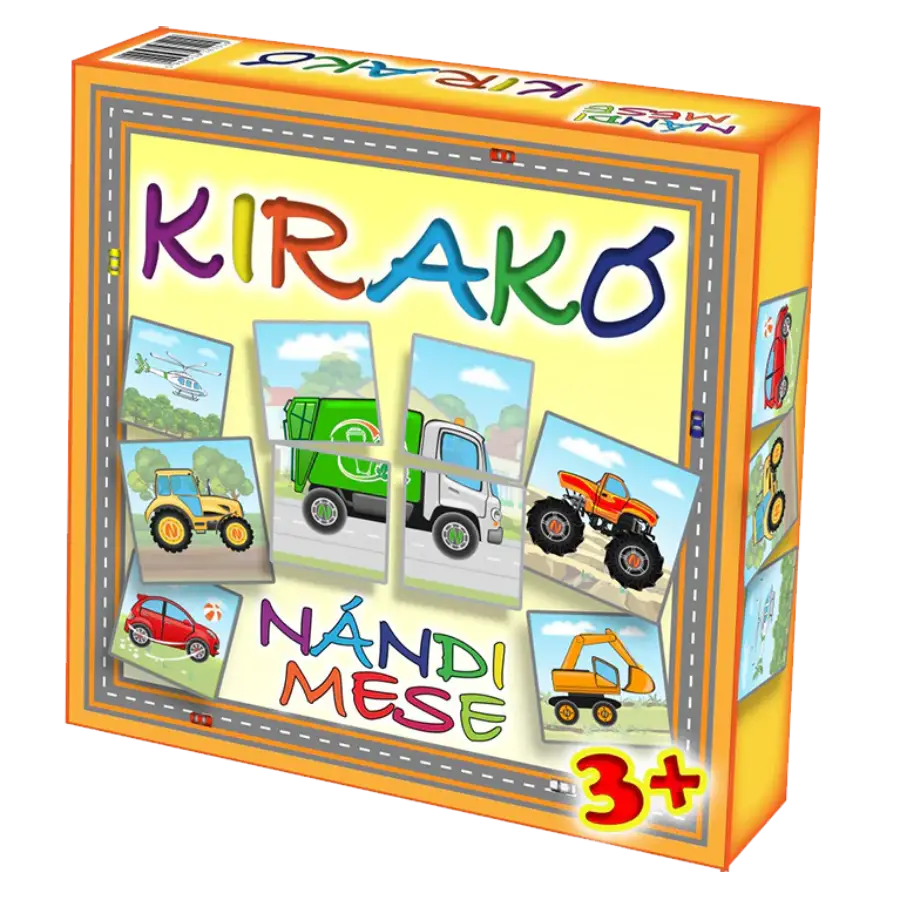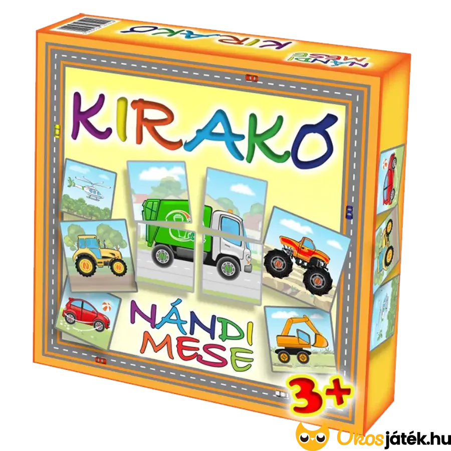 A 24 négyzet alakú lapkából álló kirakó a Nándi Mese világából jól ismert különféle járműveket ábrázoló képeket tartalmaz. A kirakóból a Kis Piros Autó, a Monster, a Kukásautó, a Markoló, a Traktor és a Helikopter is kirakható. Egy képet 4 puzzle elemből tudnak kitenni a gyerekek, így összesen 6 különböző képet lehet elkészíteni. A kirakó elemei vastag kartonból készültek, könnyen kezelhetők, tartósak.